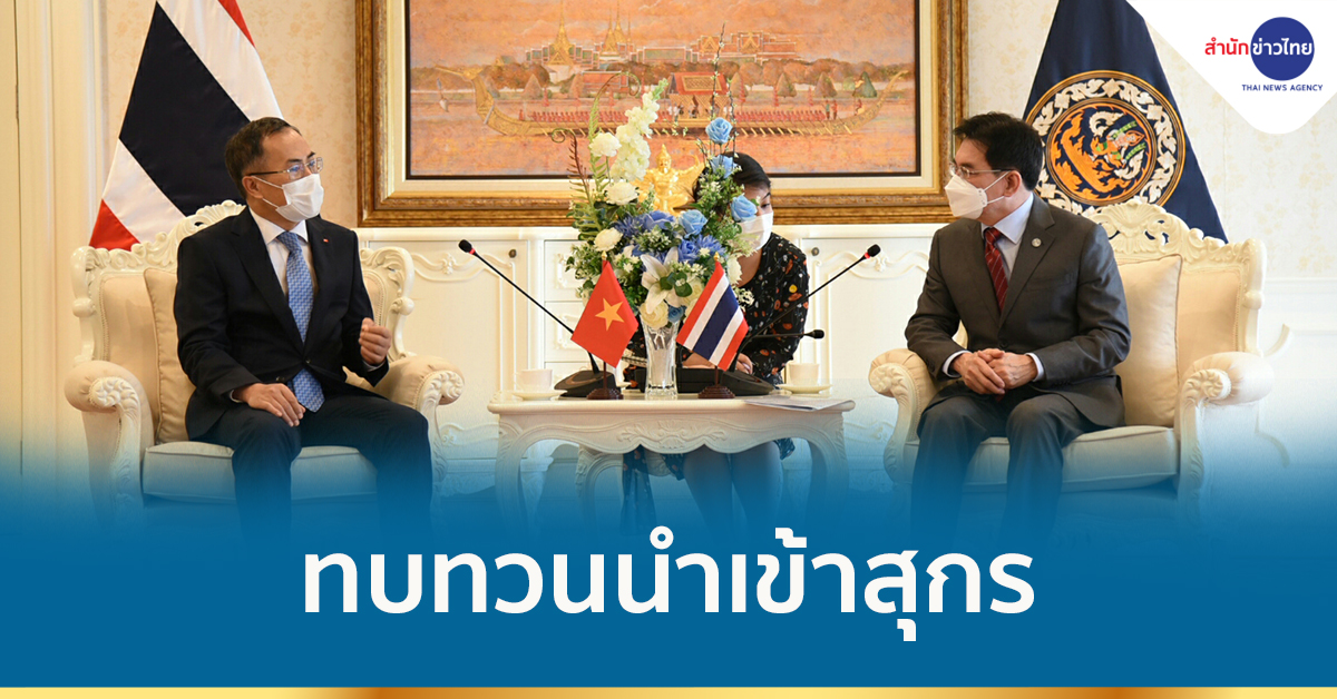 นนทบุรี 7 มิ.ย.-รัฐมนตรีพาณิชย์ ระบุเวียดนามจะทบทวนมาตรการประกาศห้ามนำเข้าสุกรแก่ไทยใหม่ คาดได้รับข่าวดีเร็วๆ นี้ ปลื้มการค้า 2 ฝ่ายขยายตัวเกือบร้อยละ 20 แม้เจอพิษโควิด เตรียมฉลองครบรอบ 45 ปี ความสัมพันธ์ไทย-เวียดนาม พร้อมตั้งเป้าเพิ่มการค้าปีนี้ 25,000 ล้านดอลลาร์สหรัฐ