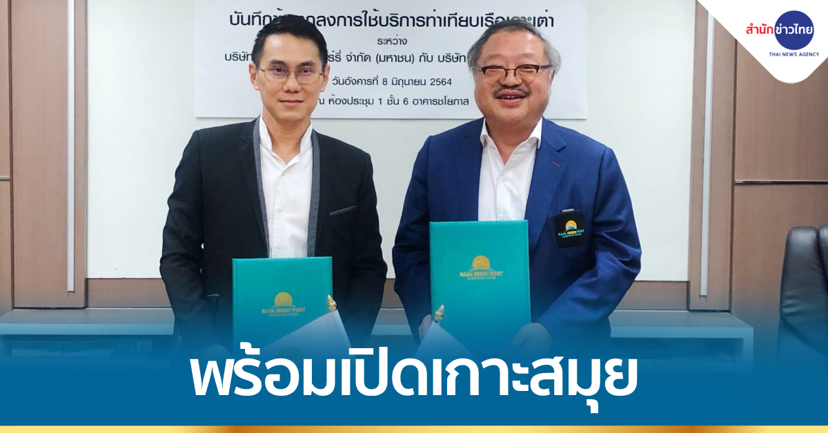 นายอภิชาติ ชโยภาส กรรมการผู้จัดการ บริษัท ท่าเรือราชาเฟอร์รี่ จำกัด (มหาชน) กล่าวว่า ราชาเฟอร์รี่ได้ร่วมลงนามในบันทึกข้อตกลงการใช้บริการท่าเทียบเรือเกาะเต่ากับบริษัท เกาะเต่า วินด์ เพื่อส่งเสริมและกระตุ้นการท่องเที่ยวระหว่างเกาะพะงันและเกาะเต่า รวมทั้งยังเป็นการขยายเส้นทางการให้บริการเดินเรือข้ามฟากขนส่งผู้โดยสารและสัมภาระของบริษัทฯ ให้ครอบคลุมมากขึ้น