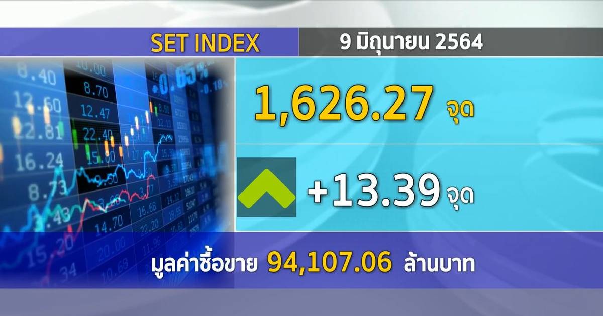 กทม. 9 มิ.ย.-ตลาดหลักทรัพย์ ปิดวันนี้ที่ระดับ 1,626.27 จุด เพิ่มขึ้น 13.39 จุด (+0.83%) มูลค่าการซื้อขาย 94,107.06 ล้านบาท ขานรับปัจจัยในประเทศเกื้อหนุน
