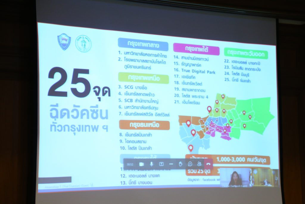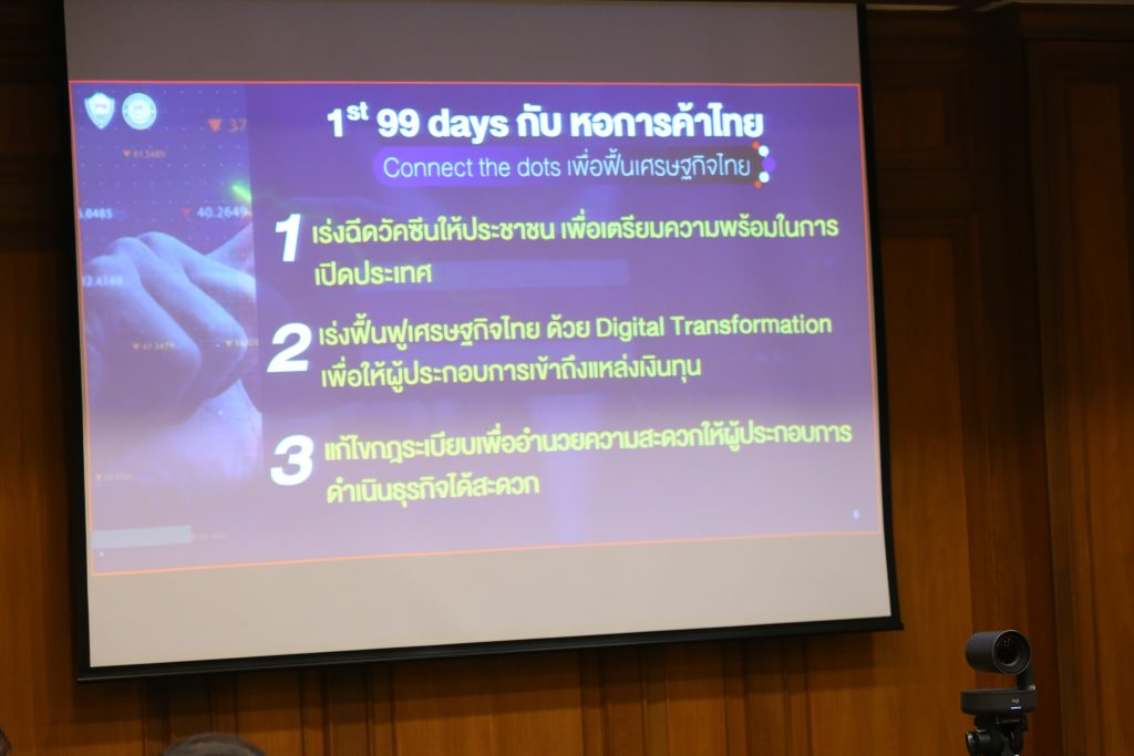 นายสนั่น อังอุบลกุล ประธานกรรมการหอการค้าไทยและสภาหอการค้าแห่งประเทศไทย เปิดเผยภายหลังการหารือกับนายสุพัฒนพงษ์ พันธ์มีเชาว์ รองนายกรัฐมนตรีและรัฐมนตรีว่าการกระทรวงพลังงาน พร้อมด้วยผู้แทนจากหน่วยงานต่างๆ อาทิ ดร.ทศพร ศิริสัมพันธ์ ประธานที่ปรึกษานายกรัฐมนตรี เลขาธิการสภาพัฒน์ ผู้แทนธนาคารแห่งประเทศไทย ผู้แทนสำนักงานส่งเสริมวิสาหกิจขนาดกลางและขนาดย่อม โดยกล่าวว่า หอการค้าไทยกำลังเร่งดำเนินนโยบาย Connect the Dots ภารกิจ 99 วันแรกใน 3 ประเด็น ได้แก่ การเร่งฉีดวัคซีนให้ประชาชนโดยเร็วที่สุด การช่วยเหลือผู้ประกอบการให้เข้าถึงแหล่งเงินทุน และการปรับปรุงกฎระเบียบเพื่ออำนวยความสะดวกให้ผู้ประกอบการในการดำเนินธุรกิจ โดยในภารกิจเรื่องการฉีดวัคซีน มีความคืบหน้าไปมาก และกำลังดำเนินการอย่างต่อเนื่อง ซึ่งรองนายกฯ ได้ขอบคุณหอการค้าไทยและภาคเอกชนที่เป็นกำลังสำคัญในการดำเนินงานเรื่องนี้