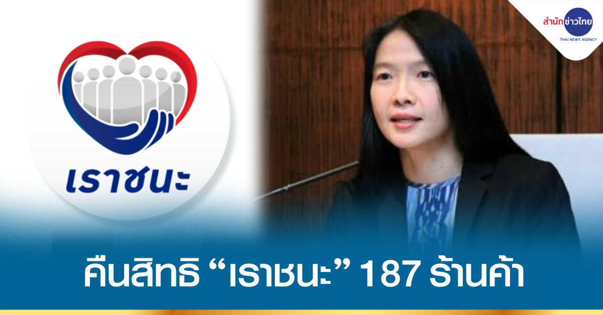 กรุงเทพฯ 10 มิ.ย.- คลังยกเลิกการระงับสิทธิชั่วคราวร้านค้าเข้าร่วมโครงการ “เราชนะ” 187 ราย ย้ำทุกฝ่ายใช้จ่ายอย่างถูกต้อง เพื่อร่วมกันฟื้นเศรษฐกิจ
