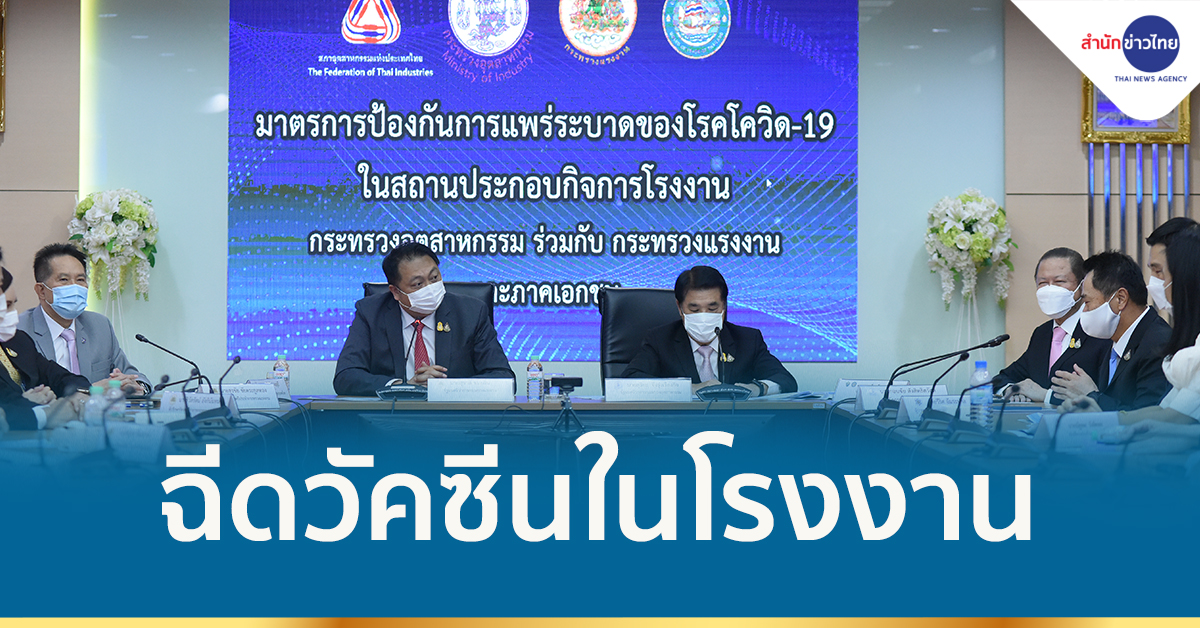กรุงเทพฯ 11 มิ.ย.-รัฐผนึกเอกชนเตรียมความพร้อมรับมือฉีดวัคซีนในโรงงาน หวังป้องกัน-ควบคุมการแพร่ระบาดโควิด-19 ในโรงงานให้มากขึ้น