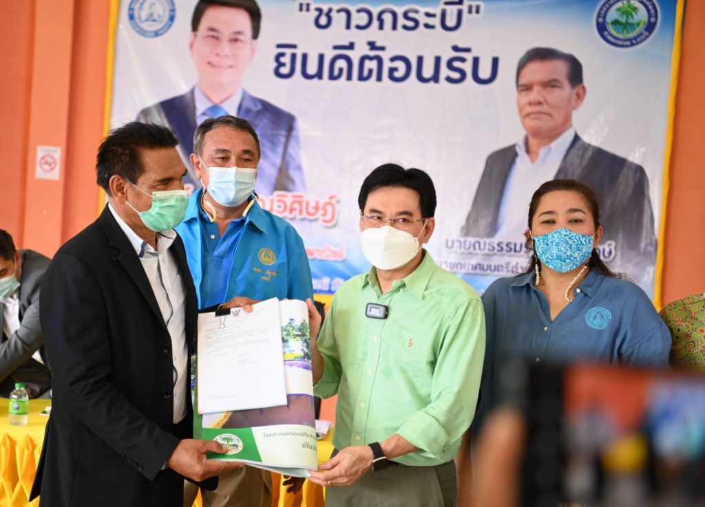 นายจุรินทร์ ลักษณวิศิษฏ์ รองนายกรัฐมนตรี และรัฐมนตรีว่าการกระทรวงพาณิชย์ พร้อมด้วยคณะได้ลงพื้นที่พบปะกลุ่มเกษตรกรอําเภอคลองท่อม เพื่อมอบถุงยังชีพบรรเทาความเดือดร้อนให้กับพี่น้องประชาชนที่ได้รับ ผลกระทบจากโควิด-19 ณ เทศบาลตําบลคลองพนพัฒนา อําเภอคลองท่อม จังหวัดกระบี่ และได้กล่าวแสดงความยินดีกับชาวสวนปาล์มที่วันนี้ ปาล์มราคาดี 6.80 บาท และ 7 บาทต่อกิโลกรัมในบางช่วง เป็นเพราะมาตรการบริหารจัดการเชิงรุกที่กระทรวงพาณิชย์ร่วมมือกับกระทรวงเกษตรและคณะกรรมการนโยบายปาล์มแห่งชาติกำหนดมาตรการหลายเรื่องเช่น สกัดการลักลอบนำเข้าปาล์มจากต่างประเทศ ออกประกาศกระทรวงเป็นคำสั่งห้ามนำเข้าปาล์มทางบก และออกทางด่านที่กำหนดเท่านั้น และสนับสนุนผู้ส่งออกน้ำมันปาล์มกิโลกรัมละ 2 บาท เพื่อส่งเสริมให้ส่งออก รับซื้อผลปาล์มในประเทศแต่มีเงื่อนไข 1.สตอกปาล์มในประเทศต้องเกิน 300,000 ตัน 2.ราคาปาล์มต่างประเทศต้องต่ำกว่าในประเทศ เพื่อให้ส่งออกปาล์มในประเทศ และถ้าราคาตก ภาครัฐมีนโยบายประกันรายได้เกษตรกร ในการเข้าร่วมรัฐบาล ช่วยชาวสวนปาล์มให้ได้รับเงินส่วนต่าง ถ้าราคาปาล์มตกกว่า 4 บาท จะพยายามช่วยสุดความสามารถ