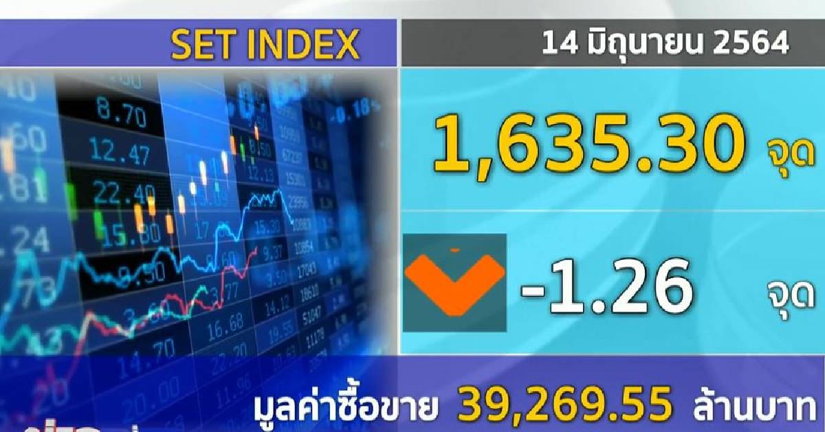 กทม. 14 มิ.ย.-ดัชนีหุ้นไทยเปิดบวก 6.24 จุด แต่มีความกังวลเลื่อนฉีดวัคซีนและข่าวใหญ่ ธนาคารกลางสหรัฐจะประชุมวันที่ 16-17 มิ.ย. ดัชนีช่วงเที่ยงอยู่ที่ 1,635.30 จุด ลดลง 1.26 จุด มูลค่าซื้อขาย 39,269.55 ล้านบาท