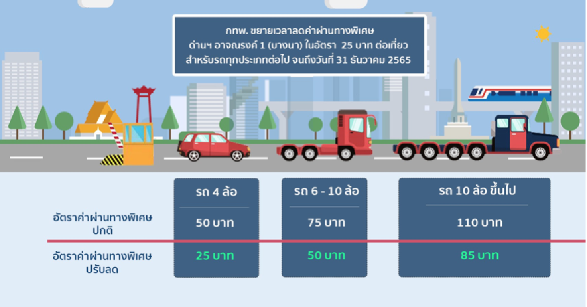 1. รถ 4 ล้อ อัตราค่าผ่านทางพิเศษปกติ 50 บาท ปรับลดเหลือ 25 บาท