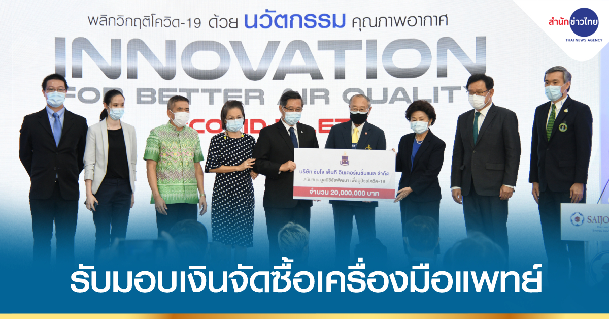 นายสุเมธ ตันติเวชกุล เลขาธิการมูลนิธิชัยพัฒนา รับมอบเงิน 20 ล้านบาท จากนายกอบศักดิ์ ภูตระกูล รองผู้จัดการใหญ่ ธนาคารกรุงเทพ จำกัด (มหาชน) จากนั้น นายสมศักดิ์ จิตติพลังศรี กรรมการผู้จัดการ บริษัท ซัยโจ เด็นกิ อินเตอร์เนชั่นแนล จำกัด มอบเงินอีก 20 ล้านบาท สำหรับสนับสนุนการจัดซื้อเครื่องมือทางการแพทย์ เพื่อลดการติดเชื้อในโรงพยาบาล นอกจากนี้ ทางซัยโจ เด็นกิ ยังสนับสนุนเครื่องช่วยหายใจและหน้ากาก N95 แก่โรงพยาบาล 5 แห่ง ได้แก่ โรงพยาบาลธรรมศาสตร์เฉลิมพระเกียรติ 5 เครื่อง โรงพยาบาลวชิรพยาบาล 9 เครื่อง และหน้ากาก N95 จำนวน 1,000 ชิ้น โรงพยาบาลปากเกร็ด 5 เครื่อง โรงพยาบาลปทุมธานี 3 เครื่อง และศูนย์การแพทย์ปัญญานันทภิกขุ ชลประทาน 3 เครื่อง มูลค่า 7,500,000 บาท