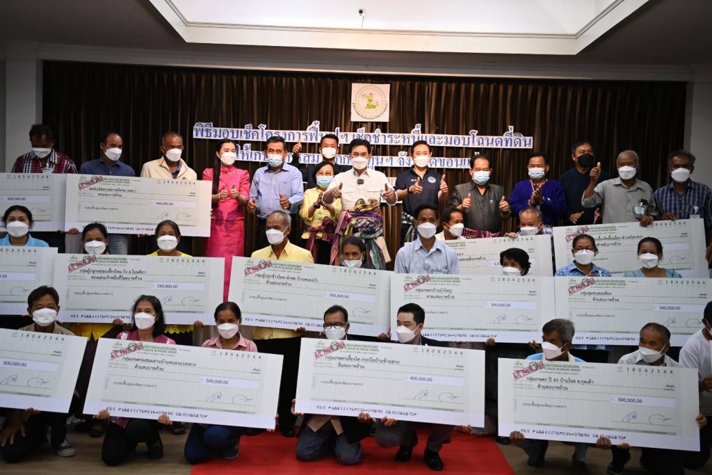 นายจุรินทร์ ลักษณวิศิษฏ์ หัวหน้าพรรคประชาธิปัตย์ รองนายกรัฐมนตรี และรัฐมนตรีว่าการกระทรวงพาณิชย์ ในฐานะประธานกรรมการกองทุนฟื้นฟูและพัฒนาเกษตรกร เป็นประธานในพิธีมอบเช็คชําระหนี้และมอบโฉนดที่ดินของกองทุนฟื้นฟูเพื่อช่วยเหลือเกษตรกรให้แก่เกษตรกรจังหวัด ขอนแก่น ณ ห้องประชุมโรงแรมราชาวดี รีสอร์ท แอนด์โฮเทล อําเภอเมือง จังหวัดขอนแก่น