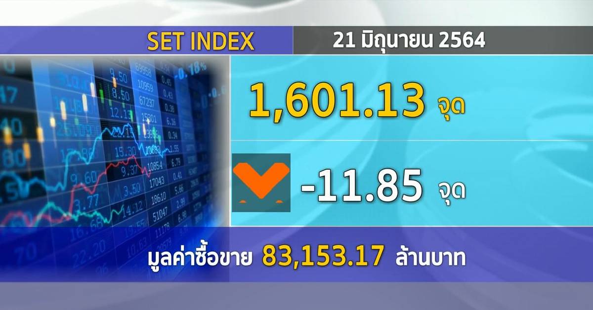 กทม. 21 มิ.ย.-ตลาดหลักทรัพย์ ปิดวันนี้ที่ระดับ 1,601.13 จุด ลดลง 11.85 จุด (-0.73%) มูลค่าการซื้อขาย 83,153.17 ล้านบาท นักวิเคราะห์ฯ เผยตลาดหุ้นไทยวันนี้แกว่ง Sideway ถึง Sideway Down โดยในช่วงบ่ายดัชนีฯ ลดช่วงลบและขึ้นมาแถว 1,600 ได้หลังดาวโจนส์ฟิวเจอร์สดีดขึ้นเป็นบวก ท่ามกลางแรงกดดันจากความกังวลเฟดจะปรับขึ้นอัตราดอกเบี้ย ส่งผลให้ตลาดภูมิภาคติดลบทั่วหน้า-ตลาดในยุโรปเทรดบ่ายนี้ก็ติดลบ