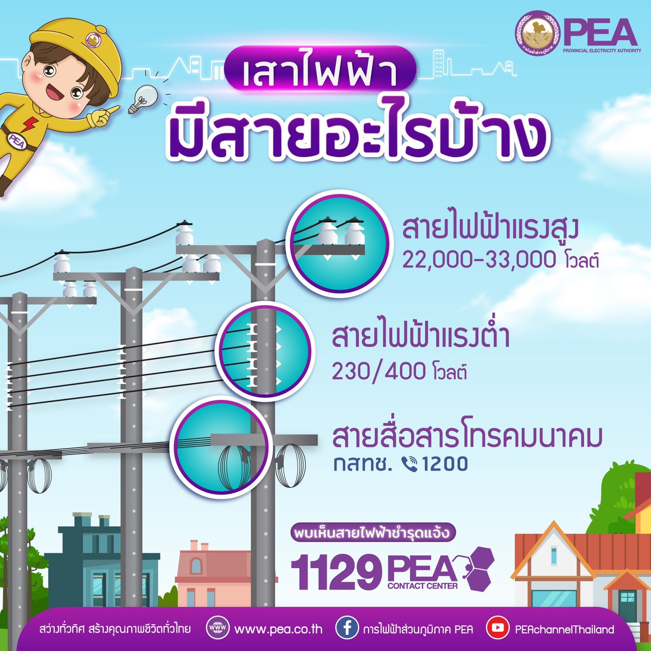การไฟฟ้าส่วนภูมิภาค (PEA) แนะนำสายต่างๆ ที่อยู่บนเสาไฟฟ้า มี 3 ชั้น ดังนี้