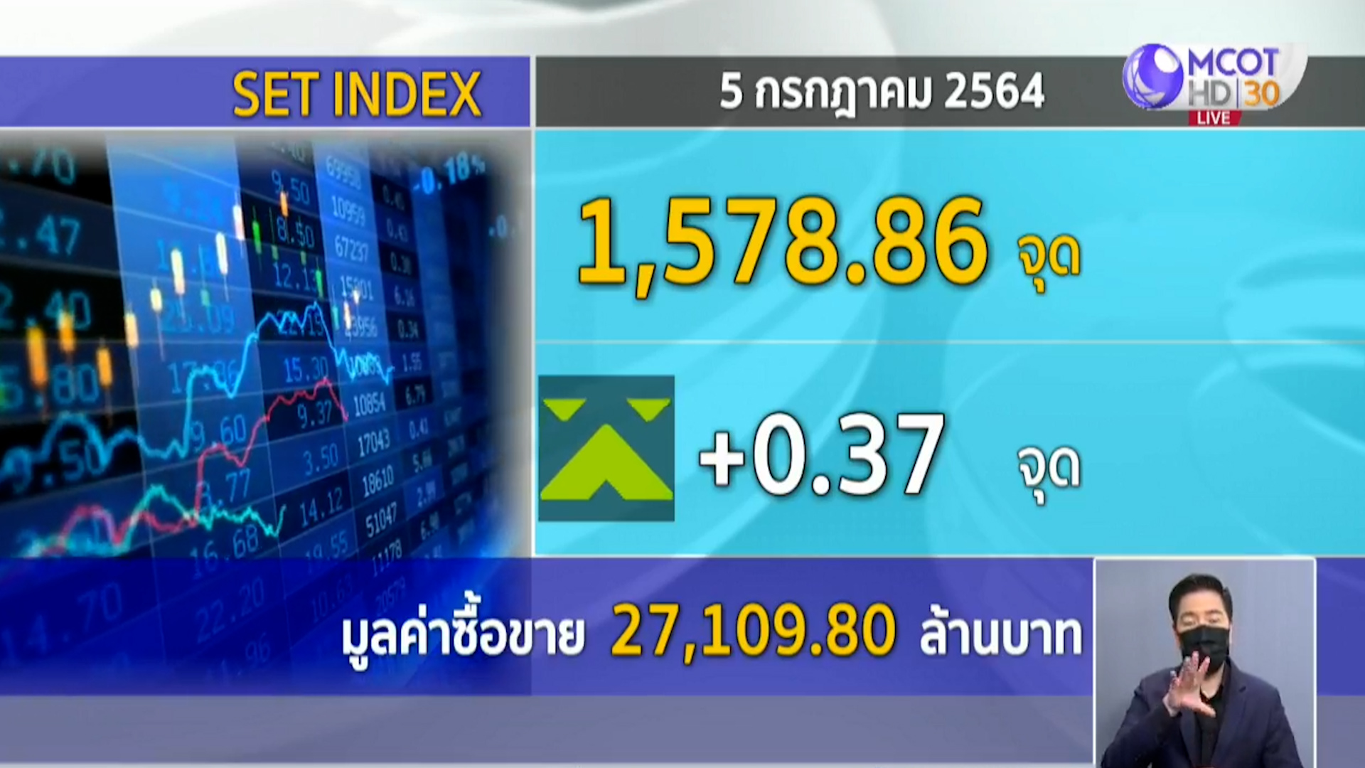 หุ้นไทยช่วงเที่ยงกลับมายืนบวก