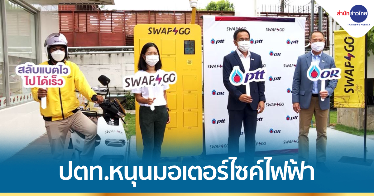 กรุงเทพฯ 6 ก.ค. – ปตท. จับมือโออาร์ เปิดตัว Swap & Go ธุรกิจให้บริการสลับแบตเตอรี่มอเตอร์ไซค์ไฟฟ้า แบบไม่ต้องรอชาร์จ รองรับการขยายตัวของผู้ใช้มอเตอร์ไซค์ไฟฟ้าที่นับวันจะเพิ่มมากขึ้น ปัจจุบันได้เปิดให้บริการสถานีสลับแบตเตอรี่แล้ว 22 แห่งทั่วกรุงเทพฯ.-สำนักข่าวไทย