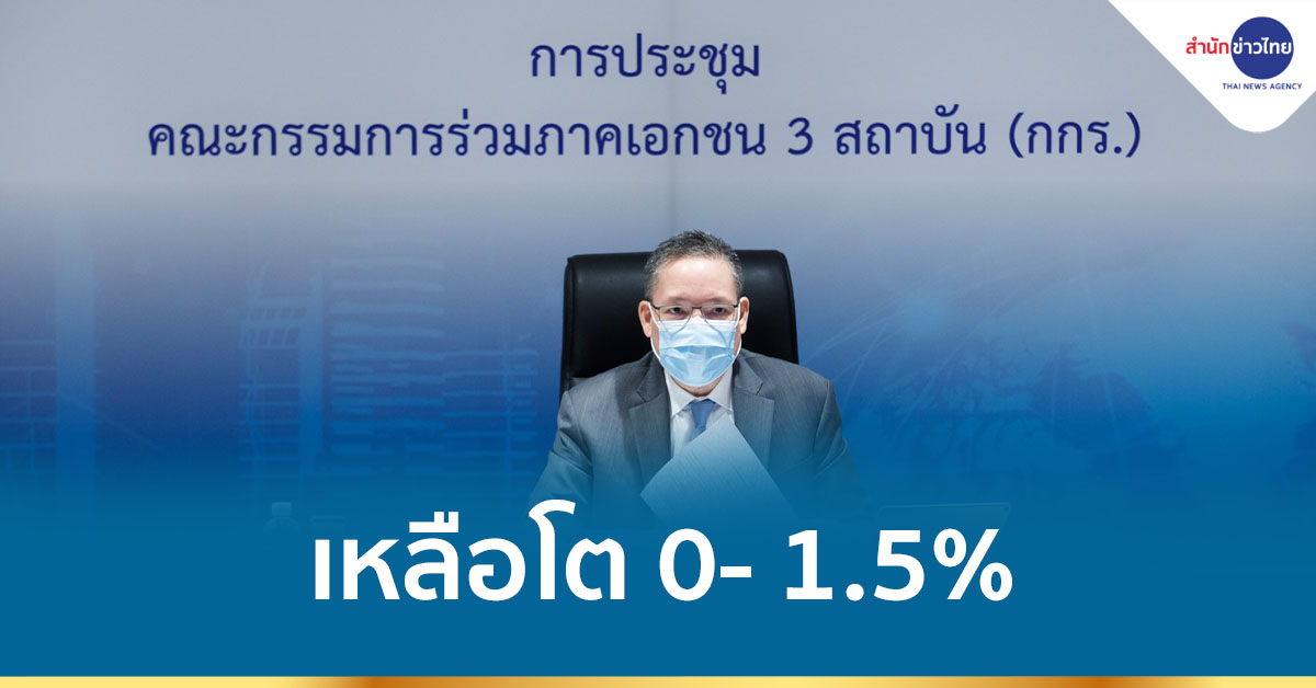 นายผยง ศรีวณิช ประธานสมาคมธนาคารไทย ในฐานะประธานคณะกรรมการร่วมภาคเอกชน3 สถาบัน ( กกร.) แถลงผลการประชุมกกร.ประจำเดือนกรกฎาคม 2564 ว่า ที่ประชุม กกร. มีมติปรับลดประมาณการเศรษฐกิจไทยปี 2564 เหลือขยายตัวได้ในกรอบ 0.0- 1.5% จากเดิมที่เดือนมิถุนายน ประมาณการขยายตัวในกรอบ 0.5-2.0 % เนื่องจากการระบาดของโควิด-19 ระลอกใหม่รุนแรงและยาวนานขึ้นกว่าที่ประเมินไว้ก่อนหน้า โดยเฉพาะสายพันธุ์เดลต้า ทำให้ต้องใช้มาตรการที่เข้มงวดในการควบคุมการระบาด ส่งผลกระทบโดยตรงต่อการดำเนินธุรกิจ การจ้างงานและรายได้แรงงาน ในพื้นที่ควบคุม นอกจากนี้ มาตรการจำกัดการเดินทางและข้อจำกัดในการกักตัว คาดว่ายังส่งผลกระทบต่อการท่องเที่ยวในประเทศตลอดช่วงไตรมาสที่สาม และอาจจะกระทบแผนการเปิดประเทศได้ แต่ทั้งนี้ก็ขึ้นอยู่กับความรุนแรงของโควิด-19 และมาตรการเพิ่มเติมของรัฐ