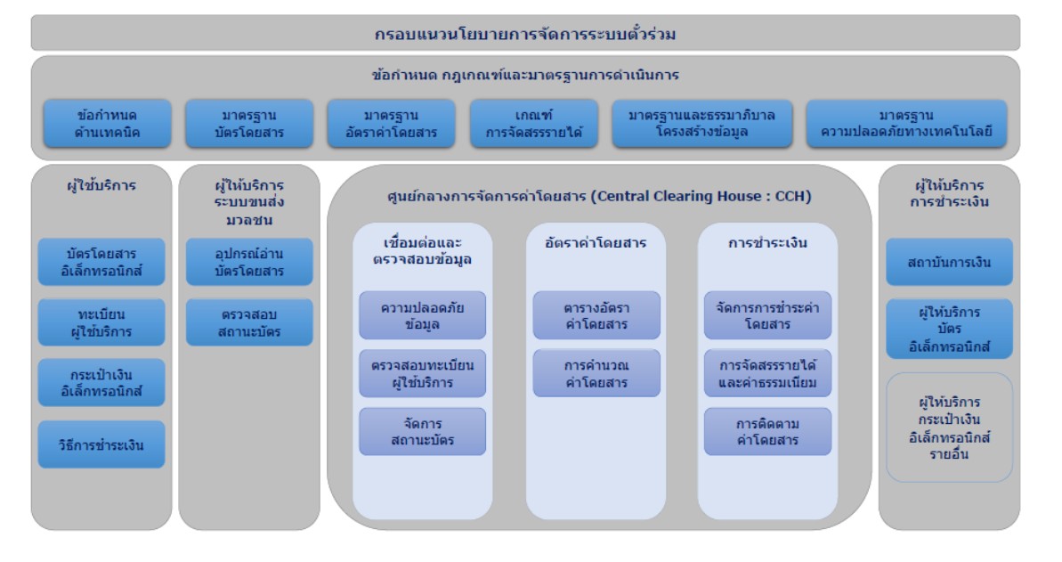 นายศักดิ์สยาม กล่าวอีกว่า ที่ประชุมได้รับทราบการแต่งตั้งคณะอนุกรรมการภายใต้ คนต. จำนวน 2 คณะ ได้แก่ 1. คณะอนุกรรมการด้านการกำหนดมาตรฐานทางเทคโนโลยีและสถาปัตยกรรมองค์กร เพื่อวางแนวการออกแบบมาตรฐานทางเทคโนโลยีระบบตั๋วร่วมให้เป็นแบบ ABT และบัตรที่ใช้เป็นแบบระบบเปิด (Open Loop) รวมถึงการกำหนดกรอบแนวนโยบายการบริหารจัดการตั๋วร่วม มีการแบ่งเป็นส่วนของผู้ใช้บริการ ส่วนของผู้ให้บริการระบบขนส่งสาธารณะ ศูนย์กลางจัดการค่าโดยสาร (Central Clearing House) และส่วนผู้ให้บริการชำระเงิน