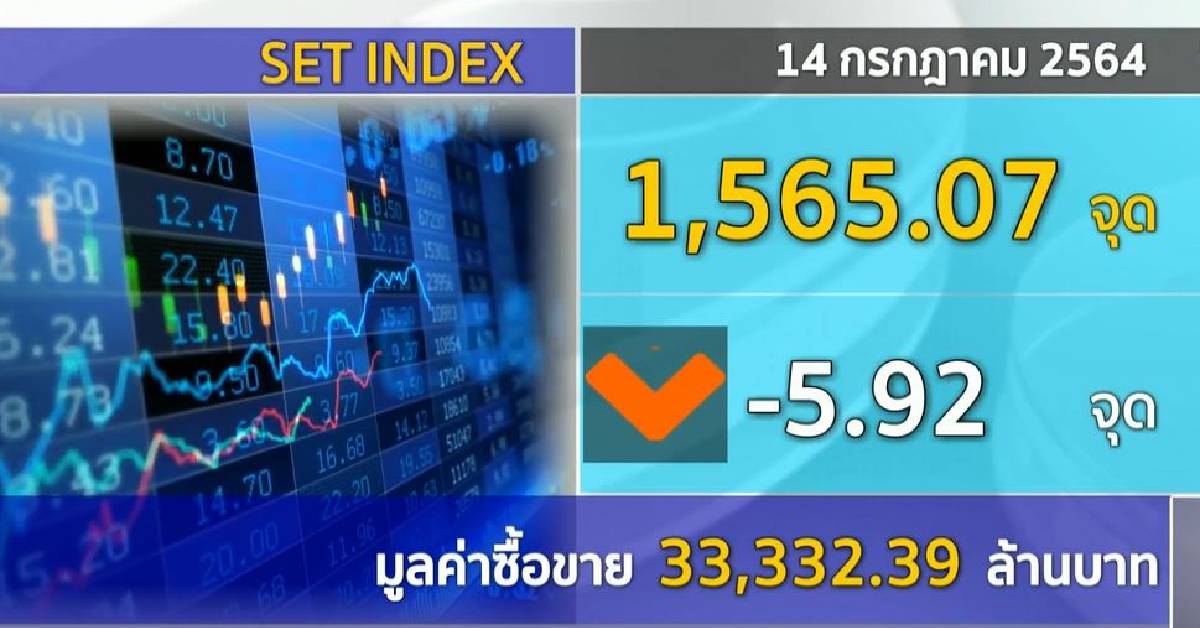กทม. 14 ก.ค.-หุ้นไทยวันนี้อยู่ในแดนลบตลอดทั้งวัน ช่วงเที่ยง ติดลบ 5.92 จุด ที่ 1,565.07 จุด มูลค่าซื้อขาย 33,332.39 ล้านบาท