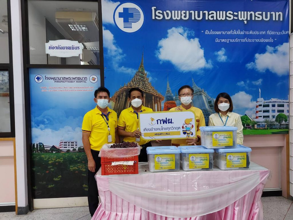 ดร.จิราพร ศิริคำ รองผู้ว่าการยุทธศาสตร์ การไฟฟ้าฝ่ายผลิตแห่งประเทศไทย (กฟผ.) เปิดเผยว่า กฟผ. ติดตามสถานการณ์การแพร่ระบาดของเชื้อไวรัสโควิด-19 ที่มียอดผู้ติดเชื้อเพิ่มสูงขึ้นอย่างใกล้ชิด โดยเฉพาะกระแสข่าวที่บุคลากรทางการแพทย์เป็นลมหมดสติในชุด PPE ขณะปฏิบัติหน้าที่ดูแลผู้ป่วยต่อเนื่องเป็นเวลานาน ดังนั้นเพื่อให้ทีมแพทย์ด่านหน้าปลอดภัยและมีความสะดวกมากขึ้น กฟผ. จึงใช้ศักยภาพและความเชี่ยวชาญของทีมช่างจิตอาสาในการผลิตหมวกป้องกันเชื้อ PAPR (Powered Air Purifying Respirator) พร้อมทั้งเร่งส่งมอบให้แก่โรงพยาบาลต่าง ๆ ทั่วประเทศ ตัวหมวกมีน้ำหนักเบา ใช้งานได้คล่องตัว รวมทั้งประสิทธิภาพของแบตเตอรี่ที่ใช้งานต่อเนื่องสูงสุดได้ถึง 8 ชั่วโมง