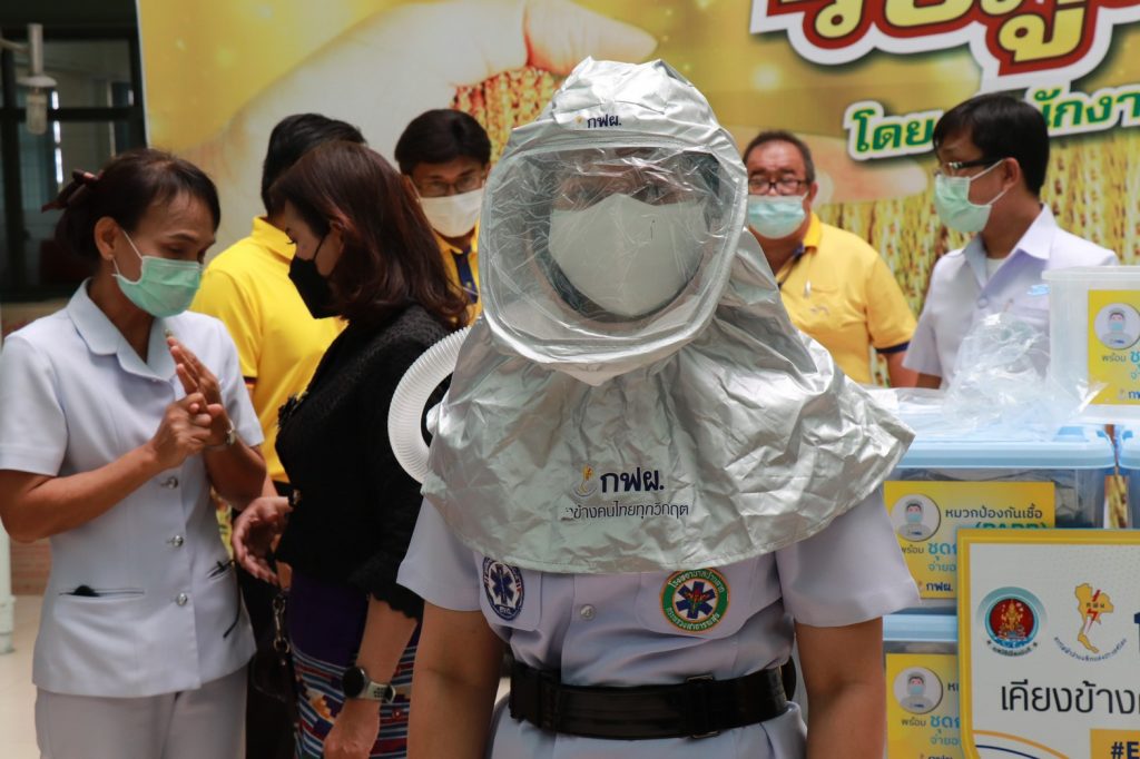 สำหรับ หมวกป้องกันเชื้อ PAPR เกิดจากน้ำใจของคนไทยร่วมกันกับ กฟผ. ระดมทุนผ่านแพลตฟอร์ม ‘เทใจ’ จนได้เงินทุนครบสำหรับการผลิตหมวกตามเป้าหมายภายในเวลาอันรวดเร็ว