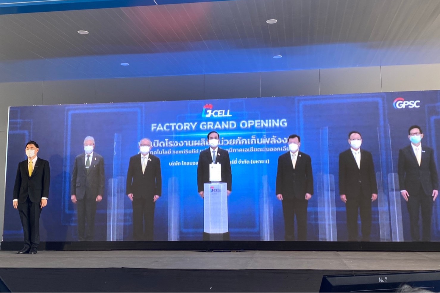 พลเอกประยุทธ จันทร์โอชา นายกรัฐมนตรี เป็นประธานในพิธีเปิดโรงงานผลิตหน่วยกักเก็บพลังงานด้วยเทคโนโลยี กระบวนการผลิตขั้นสูงแบบเซมิโซลิด แห่งแรกในภูมิภาคอาเซียนของบริษัท โกลบอล เพาเวอร์ ซินเนอร์ยี่ จำกัด (มหาชน)หรือ GPSC ผ่านระบบออนไลน์ในวันนี้(19 ก.ค.) โรงงานตั้งอยู่ในพื้นที่นิคมอุตสาหกรรมมาบตาพุด จังหวัดระยองกำลังการผลิต 30 เมกะวัตต์ชั่วโมง (MWh) ต่อปี สามารถขยายกำลังการผลิตของโรงงานนี้เพิ่มเป็น 100 MWh ต่อปี และพร้อมก้าวสู่โรงงานผลิตเชิงพาณิชย์ขนาดเริ่มต้น 1 กิกะวัตต์ชั่วโมง (GWh) ต่อปี ซึ่งอยู่ระหว่างการศึกษาและพิจารณาแผนการลงทุนในช่วงต่อไปตอบโจทย์ทั้งความปลอดภัย เสถียรภาพ และเป็นมิตรกับสิ่งแวดล้อม พร้อมขับเคลื่อนนวัตกรรมพลังงานของกลุ่ม ปตท. เพื่อให้ไทยสู่ผู้นำด้านแบตเตอรี่เทคโนโลยีและโซลูชั่นการบริหารจัดการพลังงานแบบครบวงจร มุ่งเสริมศักยภาพการผลิตไฟฟ้าจากพลังงานทดแทนป้อนกลุ่มโรงไฟฟ้า โรงงานอุตสาหกรรมขนาดใหญ่ และ SME ลุยต่อยอดแผนการผลิตแบตเตอรี่เพื่อยานยนต์ไฟฟ้าแห่งอนาคต