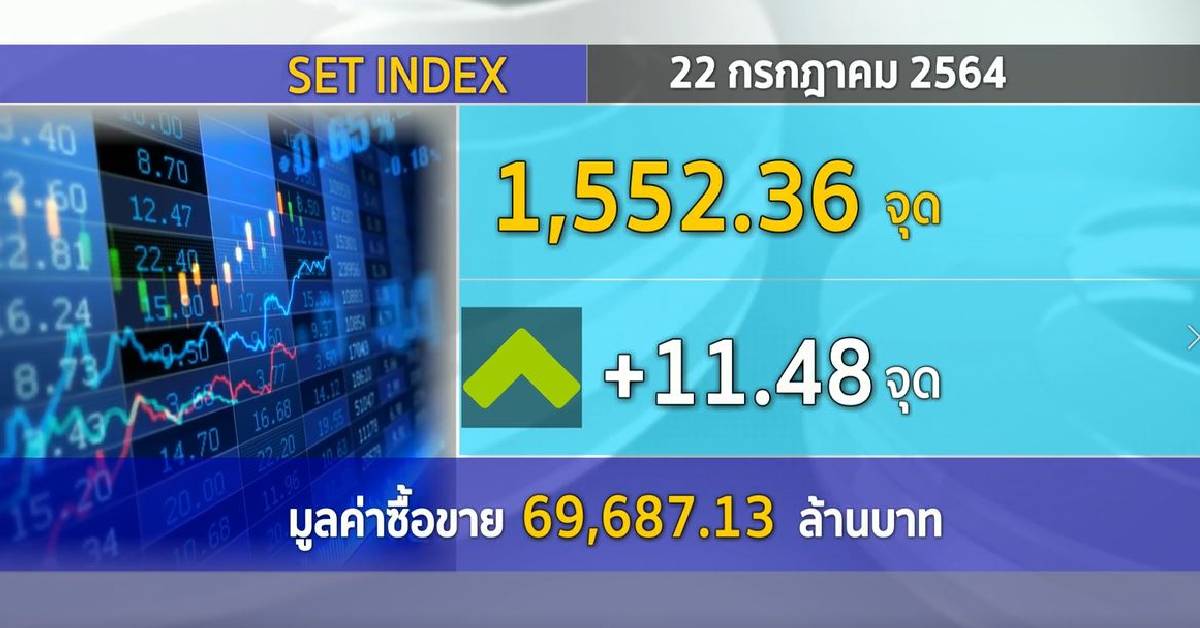กทม. 22 ก.ค.-ตลาดหลักทรัพย์ ปิดวันนี้ที่ระดับ 1,552.36 จุด เพิ่มขึ้น 11.48 จุด (+0.74%) มูลค่าการซื้อขาย 69,687.13 ล้านบาท รีบาวด์รับแรงซื้อกลุ่มแบงก์เป็นหลัก จับตาตัวเลขส่งออกไทยพรุ่งนี้