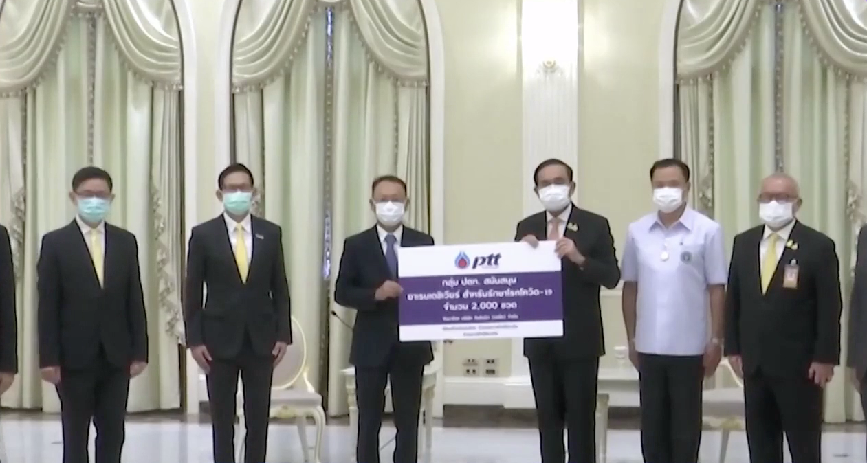 กลุ่ม ปตท. ร่วมสนับสนุนการแก้ปัญหาวิกฤต COVID-19 มาอย่างต่อเนื่องภายใต้ ‘โครงการลมหายใจเดียวกัน’ จัดหาเครื่องช่วยหายใจกว่า 370 เครื่อง และออกซิเจนเหลว รวมถึงอุปกรณ์ทางการแพทย์ส่งมอบไปแล้วแก่โรงพยาบาลทั่วประเทศและเมื่อเร็วๆ นี้ได้นำเข้ายาเรมเดซิเวียร์ (Remdesivir) ส่งมอบแก่รัฐบาล 2,000 ขวด เพื่อใช้กับผู้ป่วยที่ไม่สามารถใช้ยาฟาวิพิราเวียร์ (Favipiravir) ได้ โดยเฉพาะผู้ตั้งครรภ์ที่มีภาวะปอดอักเสบ