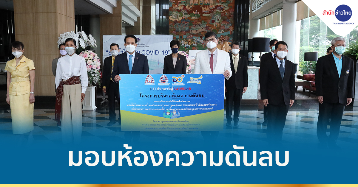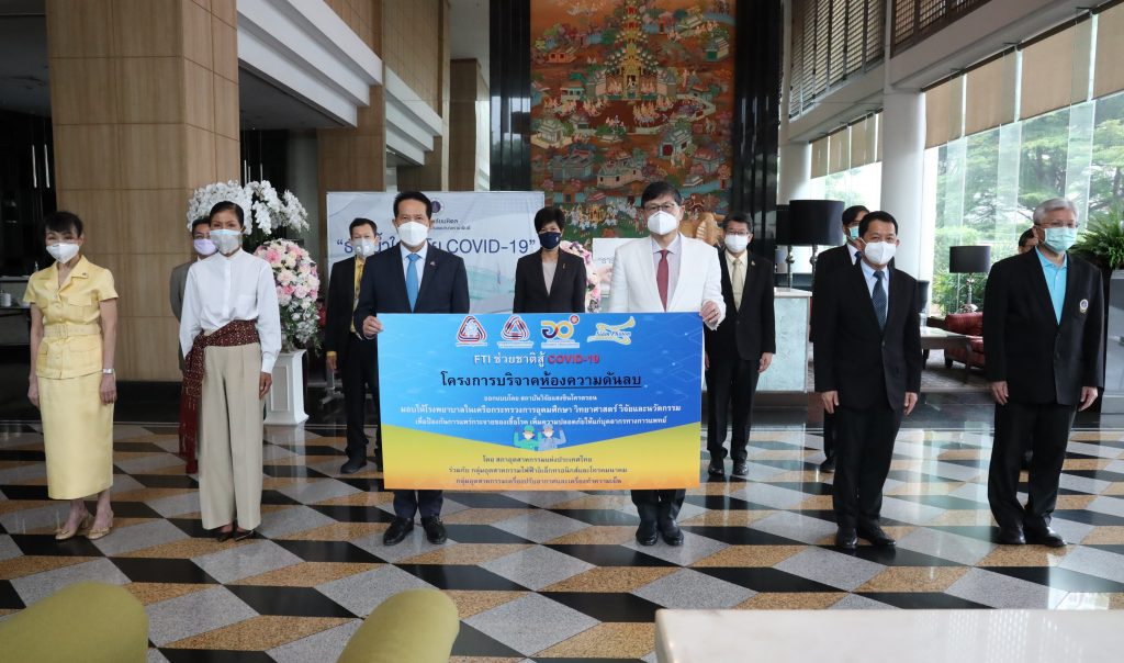 นายสุพันธุ์ มงคลสุธี ประธาน สภาอุตสาหกรรมแห่งประเทศไทย กล่าวว่า ส.อ.ท. ในฐานะองค์กรหลักภาคเอกชนที่มีส่วนขับเคลื่อนเศรษฐกิจและอุตสาหกรรมไทย ตระหนักถึงปัญหาและผลกระทบจากสถานการณ์การแพร่ระบาดของโรคโควิด-19 จึงได้จัดตั้ง “คณะทำงานช่วยเหลือผู้ป่วยโควิด-19” อย่างเร่งด่วนภายใต้มาตรการ “ป้องกัน รักษา เยียวยา” เพื่อช่วยเหลือพี่น้องประชาชน สังคม สมาชิกและผู้ประกอบการไทยให้รอดพ้นวิกฤต นำประเทศฟื้นคืนสู่สภาวะปกติโดยเร็วที่สุด พร้อมจัดตั้ง “กองทุน ส.อ.ท. ช่วยไทยสู้ภัยโควิด-19” ภายใต้มูลนิธิพัฒนาอุตสาหกรรมขึ้น เพื่อระดมทุนจัดหาอุปกรณ์ เครื่องมือ สิ่งของที่จำเป็น อาทิ ห้องความดันลบแบบ Modular Unit ซึ่งกลุ่มอุตสาหกรรมไฟฟ้า อิเล็กทรอนิกส์ และโทรคมนาคม, กลุ่มเครื่องปรับอากาศและเครื่องทำความเย็น ส.อ.ท. ได้ร่วมกับกระทรวงการอุดมศึกษา วิทยาศาสตร์ วิจัยและนวัตกรรม (อว.) และสถาบันแสงซินโครตรอนออกแบบและจัดทำขึ้นเพื่อมอบให้แก่สถานพยาบาลในเครือกระทรวง อว. และสถานพยาบาลที่มีความจำเป็นเร่งด่วนในการใช้งาน ทั้งนี้ ส.อ.ท. มีเป้าหมายในการระดมทุนจัดหาห้องความดันลบแบบ Modular Unit จำนวน 50 ห้อง มูลค่ากว่า 6.5 ล้านบาท โดยในวันนี้ถือเป็นการส่งมอบห้องความดันลบแบบ Modular Unit 2 ห้องแรก (สนับสนุนโดยธนาคารกสิกรไทย) ให้กับโรงพยาบาลรามาธิบดีเพื่อใช้รักษาผู้ป่วยโควิด-19 ใน Hospitel โรงแรมเซ็นจูรี่ปาร์ค
