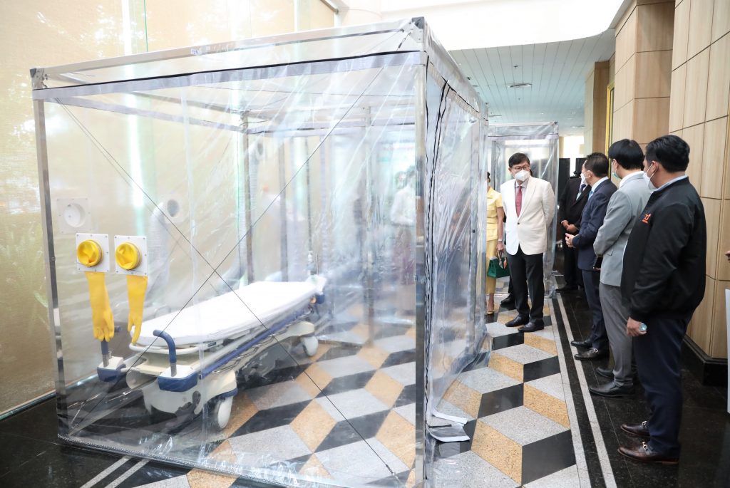 สภาอุตสาหกรรมแห่งประเทศไทย (ส.อ.ท.) ส่งมอบห้องความดันลบแบบ Modular Unit 2 ห้องแรก ภายใต้ “กองทุน ส.อ.ท. ช่วยไทยสู้ภัยโควิด-19” ให้กับโรงพยาบาลรามาธิบดี (Hospitel โรงแรมเซ็นจูรี่ปาร์ค) โดยมีนายสุพันธุ์ มงคลสุธี ประธาน สภาอุตสาหกรรมแห่งประเทศไทย พร้อมด้วยนางกอบกาญจน์ วัฒนวรางกูร ประธานกรรมการธนาคารกสิกรไทย เป็นผู้มอบ และได้รับเกียรติจากศาสตราจารย์พิเศษ ดร.เอนก เหล่าธรรมทัศน์ รัฐมนตรีว่าการกระทรวงการอุดมศึกษา วิทยาศาสตร์ วิจัยและนวัตกรรม (อว.) และ รองศาสตราจารย์นายแพทย์สุรศักดิ์ ลีลาอุดมลิปิ ผู้อำนวยการโรงพยาบาลรามาธิบดีผู้บริหาร เป็นผู้รับมอบ ณ บริเวณ Lobby Hospitel โรงแรมเซ็นจูรี่ปาร์ค ดินแดง