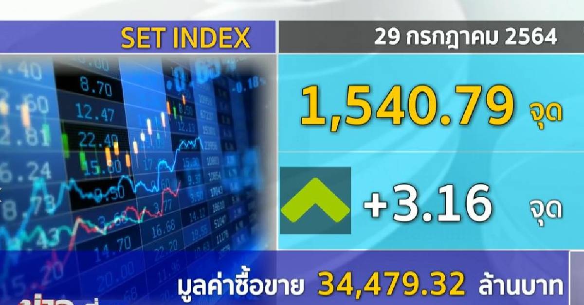 กทม. 29 ก.ค.-หุ้นไทยวันนี้ เปิดตลาดช่วงเช้าดัชนีอยู่ที่ประมาณ 1,541 จุด แต่ช่วงเที่ยงดัชนีอยู่ที่ 1,540.79 จุด บวก 3.16 จุด มูลค่าซื้อขาย 34,479.32 ล้านบาท ปัจจัยตลาด เฟดคงดอกเบี้ยทำ QE ต่อเนื่อง แต่ยังมีปัจจัยกดดันจากยอดผู้ติดเชื้อโควิดที่ยังทำนิวไฮ