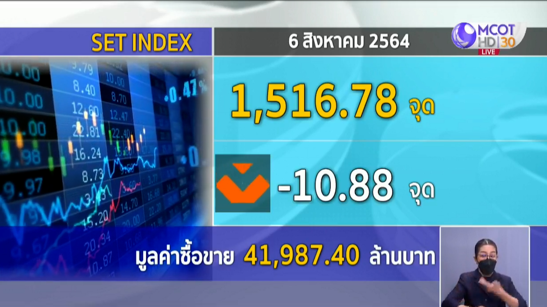 กทม. 6 ส.ค.-ตลาดหุ้นไทยเปิดซื้อขายช่วงเช้ายืนในแดนบวก รับแรงซื้อกลับหลังร่วงแรงเมื่อวาน และตัวเลขว่างงานสหรัฐออกมาดี ล่าสุดดัชนีอยู่ที่ 1,516.78 จุด -10.88 จุด มูลค่าการซื้อขาย 41,987.40 ล้านบาท