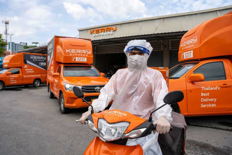 ขณะนี้ได้รับความร่วมมือจากบริษัทขนส่งได้แก่ Kerry และ Deliveree บริการจัดส่ง “กล่องพ้นภัย” ซึ่งประกอบด้วยยา Favipiravir ยาฟ้าทะลายโจร และยาพื้นฐานอื่นๆ พร้อมอาหาร 3 มื้อ ปรอทวัดไข้แบบดิจิตอล เครื่องวัดออกซิเจนปลายนิ้ว โดยคิดค่าจัดส่งจากสภากาชาดไทยในราคาถูกมากเพื่อร่วมช่วยสังคม ทางบริษัทตั้งทีมเฉพาะกิจเป็นกรณีพิเศษเพื่อจัดส่งยาให้ผู้ที่ทำ Home Isolation โดยเฉพาะ ซึ่งจะเป็นคนละกลุ่มกับพนักงานที่ทำการจัดส่งพัสดุด่วนทั่วไป โดยพนักงานเฉพาะกิจได้รับการฉีดวัคซีนแล้ว รวมไปถึงเข้ารับการตรวจเชื้อโควิด-19 และได้รับการอบรมเกี่ยวกับการป้องกันตนเองขณะปฏิบัติหน้าที่ มีอุปกรณ์ป้องกันอย่างครบถ้วน เพื่อป้องกันการรับเชื้อและการแพร่กระจายของเชื้อ ซึ่งตามมาตรการของกระทรวงสาธารณสุข