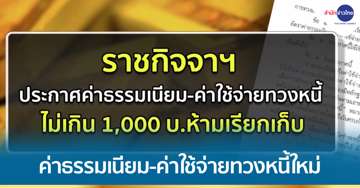 กรุงเทพฯ 14 ส.ค.- ราชกิจจาฯ ประกาศค่าธรรมเนียม-ค่าใช้จ่ายทวงหนี้ ไม่เกิน 1,000 บ. ห้ามเรียกเก็บ