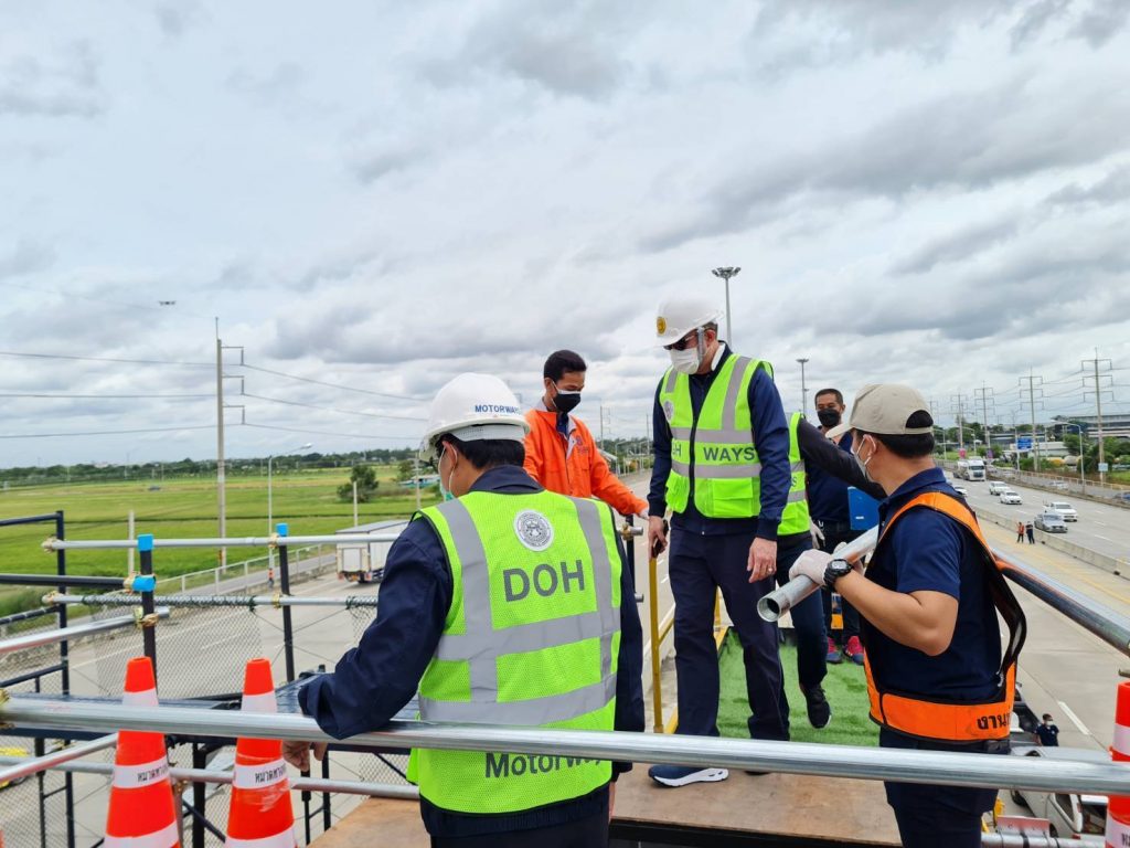 นายศักดิ์สยาม ชิดชอบ รัฐมนตรีว่าการกระทรวงคมนาคม พร้อมด้วยนายชยธรรม์ พรหมศร ปลัดกระทรวงคมนาคม นายพิศักดิ์ จิตวิริยะวศิน รองปลัดกระทรวงคมนาคม หัวหน้ากลุ่มภารกิจการพัฒนาโครงสร้างพื้นฐานด้านทางหลวง นายจิรุตม์ วิศาลจิตร อธิบดีกรมการขนส่งทางบก นายสราวุธ ทรงศิวิไล อธิบดีกรมทางหลวง และ พล.ต.ต.เอกราช ลิ้มสังกาศ ผู้บังคับการตำรวจทางหลวง เดินทางตรวจเยี่ยมการทดสอบระบบ M-Flow เพื่อเตรียมความพร้อมก่อนการเปิดให้บริการ ณ ด่านเก็บเงินค่าธรรมเนียมผ่านทางธัญบุรี 2 (ขาออก) และอาคารชัยสวัสดิ์ กิตติพรไพบูลย์ ศูนย์ควบคุมกลาง (CCB ลาดกระบัง)