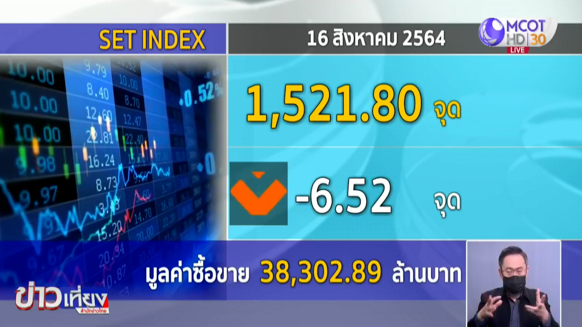 กทม. 16 ส.ค.-ดัชนีหุ้นไทยภาคเช้าอ่อนตัวลง จากยอดผู้ติดเชื้อโควิดกดดันต่อภาพรวมเศรษฐกิจ นอกจากนี้การชุมนุมทางการเมืองขับไล่รัฐบาลที่ยืดเยื้อ Fund flow ต่างชาติมีแนวโน้มไหลออก ช่วงเที่ยงดัชนีอยู่ที่ 1,521.80 จุด -6.52 จุด มูลค่าการซื้อขาย 38,302.89 ล้านบาท