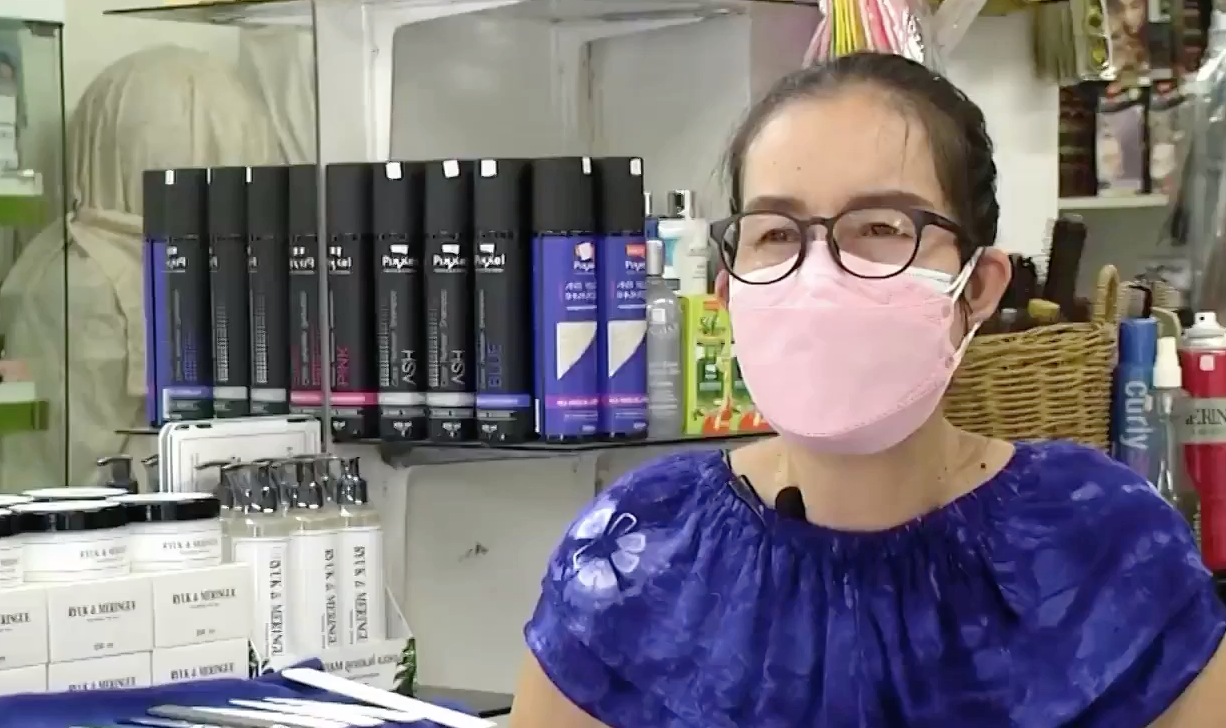 เจ้าของร้านเสริมสวย บอกว่าที่ผ่านมาจนกระทั่งมาถึงล็อกดาวน์ครั้งที่ 3 ลำบากมาก แทบประคองตัวไม่ไหว อาศัยขายสินค้าบำรุงผม เครื่องสำอางได้บ้าง แม้ที่ผ่านมาจะเคยคลายล็อกให้ตัดผมได้บ้าง แต่รายได้ก็หายไปกว่าร้อยละ 70 หวังครั้งนี้จะเปิดร้านได้นานๆ ตอนนี้เริ่มมีคนโทรมาจองคิวตัดผมแล้ว