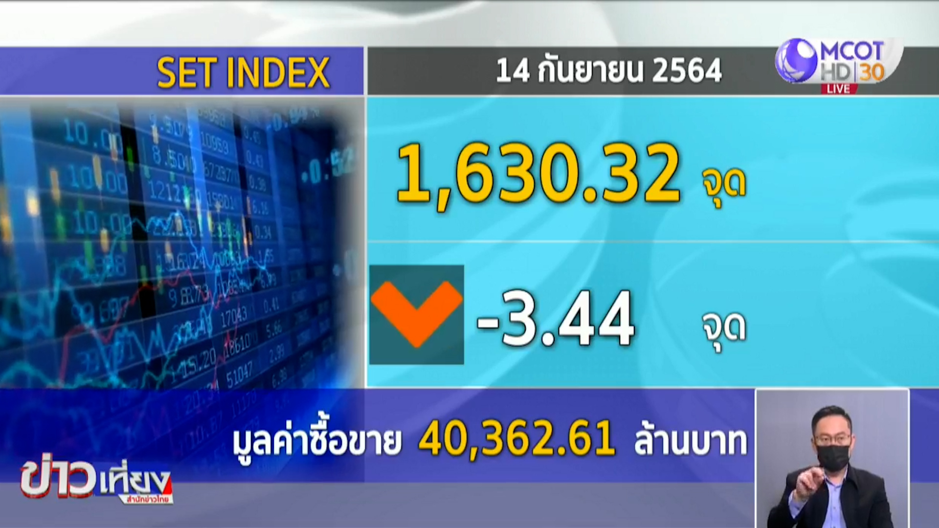 กทม. 14 ก.ย.-ดัชนีหุ้นไทยแม้ช่วงเปิดตลาด จะเป็นบวก ตามดัชนีหุ้นสหรัฐ และราคาน้ำมันดิบที่แตะ 70 ดอลลาร์ต่อบาร์เรล แต่ล่าสุดเคลื่อนไหว ในแดนลบ ดัชนีช่วงเที่ยงอยู่ที่ 1,630.32 จุด -3.44 จุด มูลค่าการซื้อขาย 40,362.61 ล้านบาท โดยนักลงทุนรอดูการประกาศตัวเลขเงินเฟ้อสหรัฐในคืนนี้ ที่จะมีผลต่อการตัดสินใจของธนาคารกลางสหรัฐ (FED) ที่อาจลดวงเงิน QE เร็วกว่าคาด