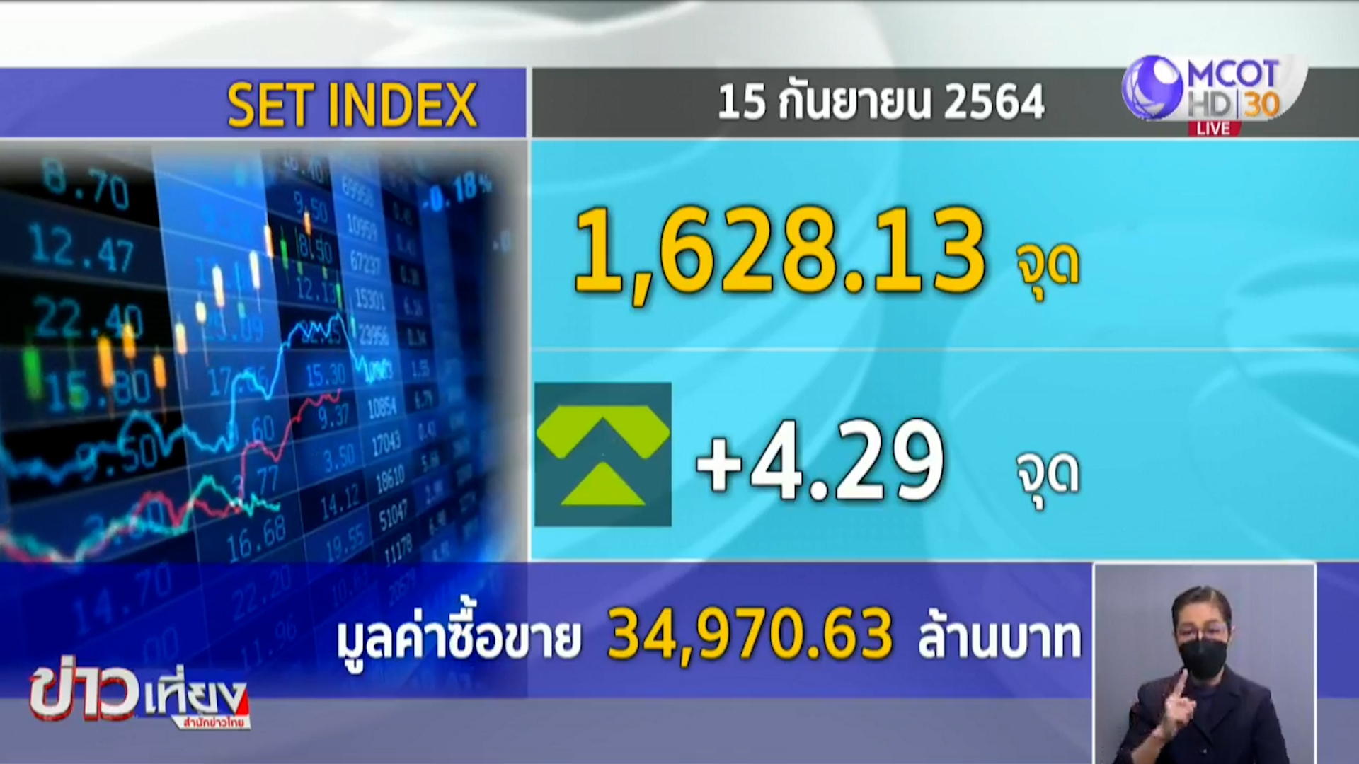 กทม. 15 ก.ย.-หุ้นไทยเช้านี้เป็นบวก ล่าสุดอยู่ที่ 1,628.13 จุด +4.29 มูลค่าการซื้อขาย 34,970.63 ล้านบาท มีปัจจัยบวกจากแผนเปิดประเทศ และราคาน้ำมันดิบเคลื่อนไหว ราว 71 เหรียญสหรัฐต่อบาร์เรล