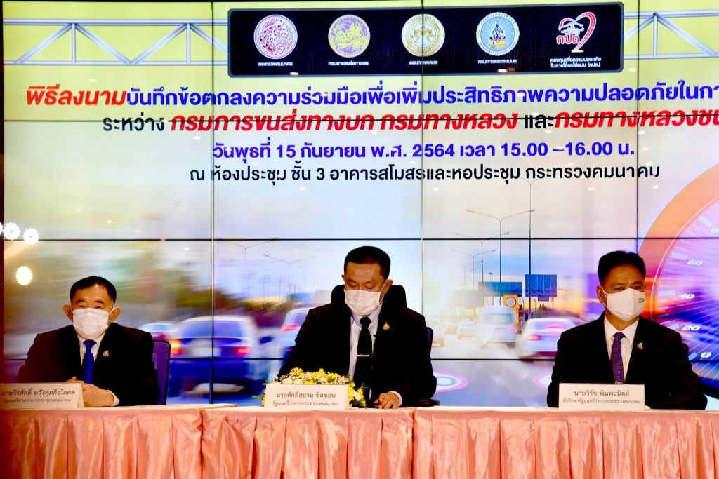 รัฐมนตรีว่าการ กระทรวงคมนาคม กล่าวด้วยว่า ได้สั่งการให้หน่วยงานที่เกี่ยวข้อง บูรณาการความร่วมมือระหว่างกัน ในการเพิ่มประสิทธิภาพความปลอดภัย ทั้งบนทางหลวงแผ่นดินและทางหลวงชนบท เพื่อให้ผู้ใช้รถใช้ถนน สามารถเดินทางบนทางหลวงแผ่นดินและทางหลวงชนบทได้อย่างสะดวก รวดเร็ว และปลอดภัย โดยมีเป้าหมายในการลดจำนวนผู้เสียชีวิต ผู้บาดเจ็บ ลดอุบัติเหตุรุนแรงทางถนนได้ สำหรับบันทึกข้อตกลงความร่วมมือในวันนี้ กรมการขนส่งทางบก กรมทางหลวง และกรมทางหลวงชนบท จะร่วมมือระหว่างกัน ในการยกระดับมาตรฐานความปลอดภัย ซึ่งกรมทางหลวง และกรมทางหลวงชนบท ได้พิจารณาเส้นทางที่จะปรับความเร็วใหม่เพิ่มเติม จำนวน 8 เส้นทาง โดยได้รับการสนับสนุนงบประมาณจากกองทุนเพื่อความปลอดภัยในการใช้รถใช้ถนน (กปถ.) สำหรับการดำเนินการที่เกี่ยวข้อง โดยแบ่งเป็น เส้นทางของกรมทางหลวง 6 เส้นทาง ได้แก่