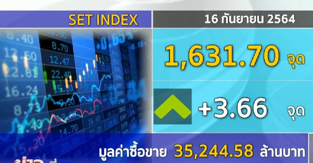 กทม. 16 ก.ย.-ตลาดหุ้นไทยภาคเช้าปรับขึ้น ช่วงเที่ยงบวก 3.66 จุด ดัชนีอยู่ที่ 1,631.70 จุด มูลค่าซื้อขาย 35,244.58 ล้านบาท
