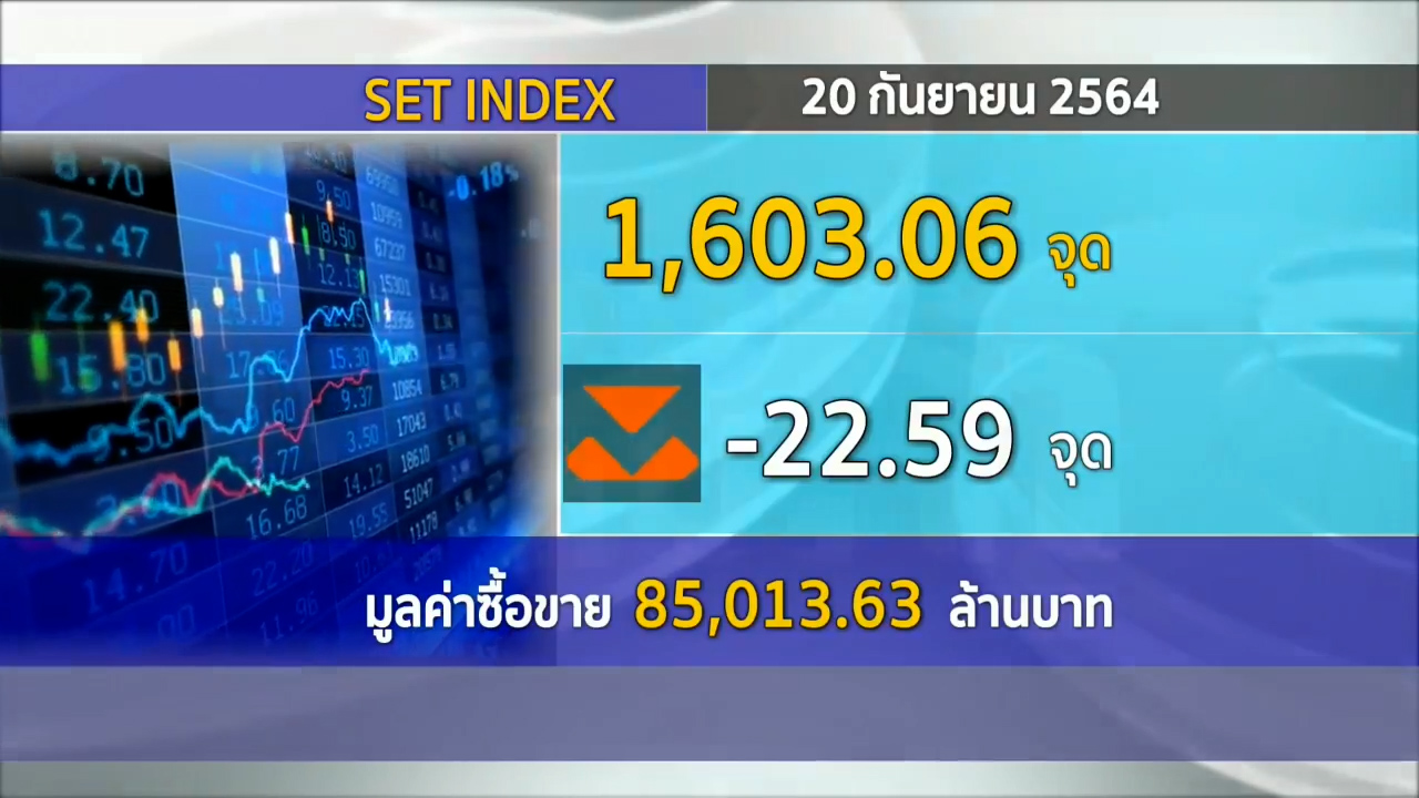 กทม. 20 ก.ย.-ตลาดหลักทรัพย์ ปิดวันนี้ที่ระดับ 1,603.06 จุด ลดลง 22.59 จุด (-1.39) มูลค่าการซื้อขาย 85,013.63 ล้านบาท ตามตลาดต่างประเทศ กังวลเฟดขึ้นดอกเบี้ยเร็วกว่าคาด – ไทยเพิ่มเพดานหนี้