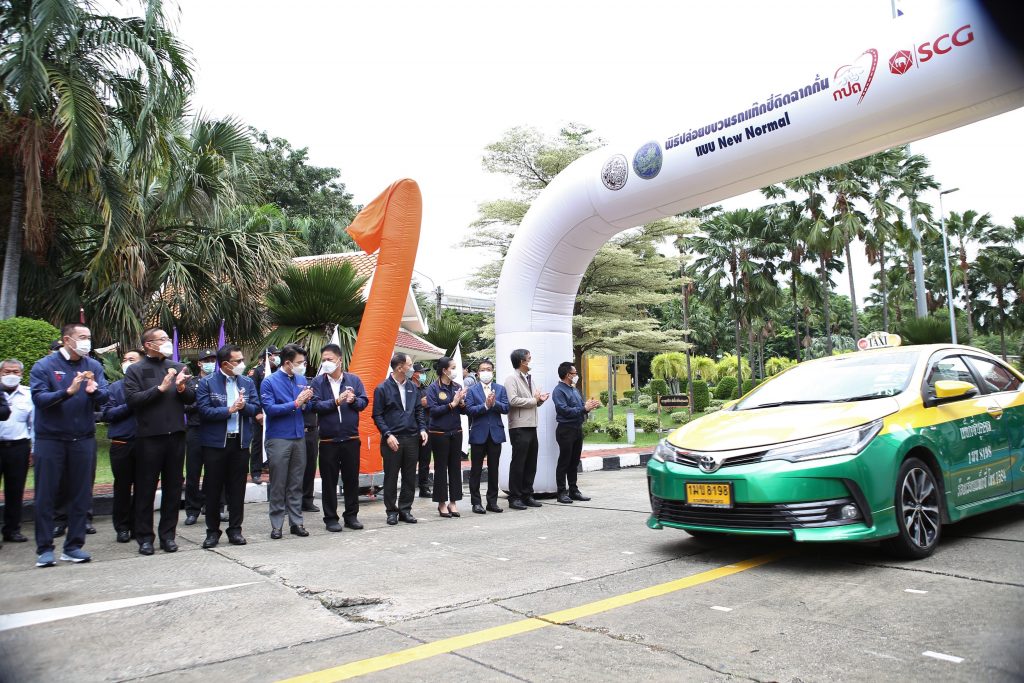 นายศักดิ์สยาม ชิดชอบ รัฐมนตรีว่าการกระทรวงคมนาคม กล่าวว่า ท่ามกลางสถานการณ์การแพร่ระบาดโควิด-19 ทุกธุรกิจต้องปรับตัวตามมาตราการสาธารณสุขเพื่อป่องกันการแพร่กระจายของเชื้อโรค โดยเฉพาะอย่างยิ่งรถแท็กซี่ซึ่งเป็นการขนส่งสาธารณะ ที่ผู้ขับรถและผู้โดยสารอยู่ในพื้นที่ใกล้กัน ส่งกระทบต่อผู้ประกอบการ เจ้าของรถ และผู้ขับรถแท็กซี่ เนื่องจากประชาชนขาดความมั่นใจ จากประเด็นปัญหาต่างๆ เหล่านี้ จึงต้องคิดนวัตกรรมมาช่วยเหลือเยียวยาและปรับปรุงระบบขนส่งสาธารณะในยุค new normal โดยรัฐบาลได้มอบหมายให้กระทรวงคมนาคมพิจารณามาตรการป้องกันควบคุมการแพร่ระบาดของโรคโควิด-19 เพื่อช่วยเหลือเยียวยาให้ผู้ขับรถแท็กซี่สามารถประกอบอาชีพได้ตามปกติ โดยมีกรมการขนส่งทางบกสนองรับนโยบายดังกล่าวและดำเนินการโครงการยกระดับความปลอดภัยและความมั่นใจในการใช้บริการรถยนต์รับจ้างบรรทุกคนโดยสารไม่เกินเจ็ดคน โดยทำการติดตั้งฉากกั้นระหว่างผู้ขับรถและผู้โดยสาร เพื่อป้องกันละอองฝอยจากการพูดคุย ไอ จาม ช่วยลดความเสี่ยงในการแพร่ระบาดของโควิด 19 และยังช่วยเสริมสร้างความเชื่อมั่นและความมั่นใจในการใช้บริการรถสาธารณะอีกด้วย