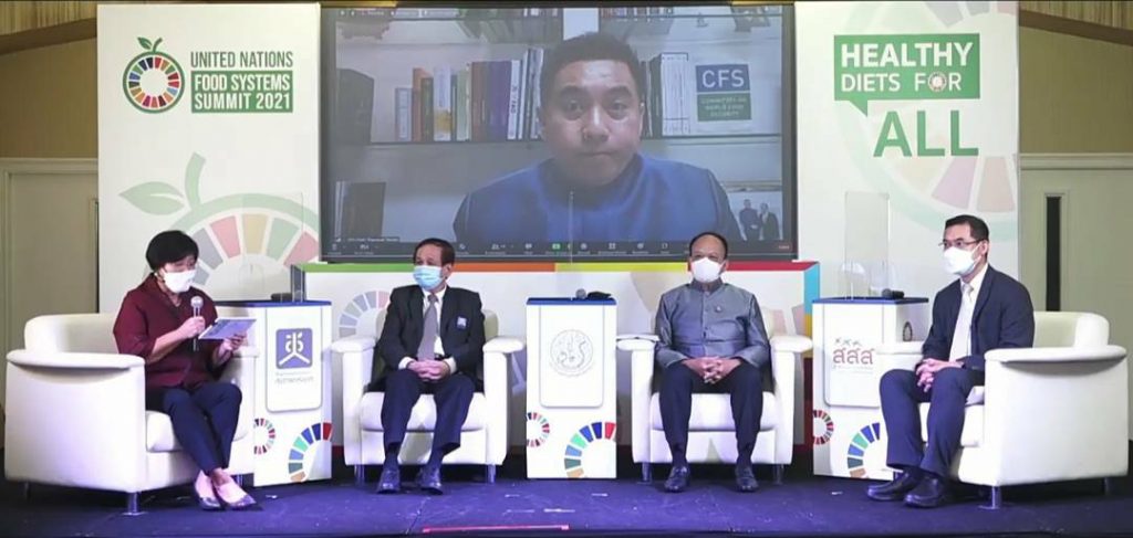 ประเทศไทย มีโครงการเกษตรเพื่ออาหารกลางวันในพระราชูปถัมภ์สมเด็จพระกนิษฐาธิราชเจ้า กรมสมเด็จพระเทพรัตนราชสุดาฯ สยามบรมราชกุมารี เป็นหนึ่งในตัวอย่างของความสำเร็จในการแก้ไขปัญหาการขาดแคลนอาหารและภาวะทุพโภชนาการของเยาวชนในพื้นที่ทุรกันดาร อีกทั้งกรอบข้อเสนอในการพลิกโฉมระบบอาหารทั้ง 5 ด้าน ของสหประชาชาติมีความสอดคล้องกับแนวทางของไทย ซึ่งได้นำวิสัยทัศน์ “มั่นคง มั่งคั่ง และยั่งยืน” มากำหนดนโยบายเกษตรและอาหาร “3S” ที่ให้ความสำคัญกับความปลอดภัยทางอาหาร หรือ Safety ความมั่นคง หรือ Security และความยั่งยืนของทรัพยากรและนิเวศการเกษตร หรือ Sustainability อีกทั้งประเทศไทยอยู่ระหว่างขับเคลื่อนโมเดลเศรษฐกิจ BCG เพื่อพัฒนาเศรษฐกิจและสังคมให้มีความยั่งยืน สมดุล และครอบคลุม ซึ่งทั้งหมดนี้ ตั้งอยู่บนพื้นฐานของยุทธศาสตร์ชาติ 20 ปี ที่ได้น้อมนำหลักปรัชญาของเศรษฐกิจพอเพียงและ SDGs มาเป็นเข็มทิศนำทาง