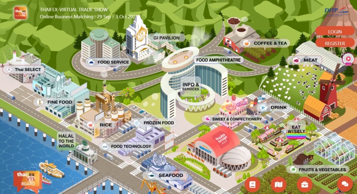 นายจุรินทร์ ลักษณวิศิษฏ์ รองนายกรัฐมนตรีและรัฐมนตรีว่าการกระทรวงพาณิชย์ เปิดงานแสดงสินค้าอาหารเสมือนจริง THAIFEX-VTS ซึ่งนายจุรินทร์ กล่าวว่า การจัดงาน THAIFEX-VTS ระหว่างวันที่ 29 กันยายนถึง 3 ตุลาคมนี้ ได้พัฒนาแพลตฟอร์ม www.thaifex-vts.com ให้มีรูปแบบ ฟังก์ชั่น และบริการที่น่าสนใจ ทันสมัย ใช้งานง่าย และหลากหลาย เพื่อสอดรับกับความต้องการของผู้ซื้อและผู้ขาย โดยสามารถรองรับการแสดงผลผ่านอุปกรณ์ได้อย่างถูกต้อง ทั้งเครื่องคอมพิวเตอร์แบบตั้งโต๊ะ คอมพิวเตอร์แบบพกพา แท็ปเล็ต หรือโทรศัพท์มือถือ รองรับการเจรจาธุรกิจมากกว่า 4 คนภายใน 1 ห้องเจรจา โดยอนุญาตให้คู่เจรจาสามารถเชิญบุคคลภายนอก อาทิ ล่ามแปลภาษา ผู้มีอำนาจตัดสินใจเข้ามาในวงเจรจาได้ มีช่องทางการสื่อสารสำหรับประกาศความต้องการซื้อ-ขาย ให้ใช้งาน โดยเพิ่มระบบกระดานสนทนาที่สามารถลงประกาศพร้อมช่องทางการติดต่อ เพื่อให้ผู้ที่สนใจสามารถติดต่อกลับไปยังผู้ขายได้ และ มีระบบแนะนำสินค้า/บริษัท ที่ผู้ใช้งานอาจสนใจเข้ามาไว้เป็นทางเลือก โดยอ้างอิงจากข้อมูลที่ผู้ใช้งานได้เลือกไว้ตอนลงทะเบียน