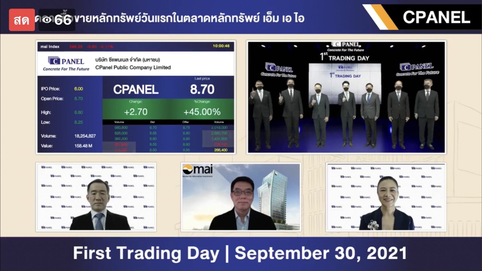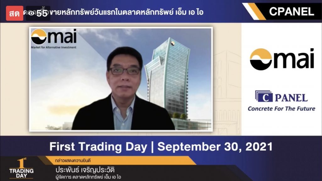 นายประพันธ์ เจริญประวัติ ผู้จัดการตลาดหลักทรัพย์ เอ็ม เอ ไอ (mai) เปิดเผยว่า ตลาดหลักทรัพย์ mai ขอต้อนรับ บมจ. ซีแพนเนล เข้าจดทะเบียนและเริ่มซื้อขายในตลาดหลักทรัพย์ mai ภายใต้กลุ่มอสังหาริมทรัพย์และก่อสร้าง โดยใช้ชื่อย่อในการซื้อขายหลักทรัพย์ว่า “CPANEL” ในวันนี้ ด้วยมูลค่าหลักทรัพย์ ณ ราคา IPO 900 ล้านบาท ซึ่ง CPANEL ประกอบธุรกิจเป็นผู้ผลิตและจำหน่ายแผ่นพื้นและผนังคอนกรีตสำเร็จรูป (Precast Concrete Slab and Wall Panel) และส่วนประกอบอาคารที่ผลิตจากคอนกรีตสำเร็จรูป อาทิ คาน บันได ผนังรับหลังคา ฟาซาด เป็นต้น