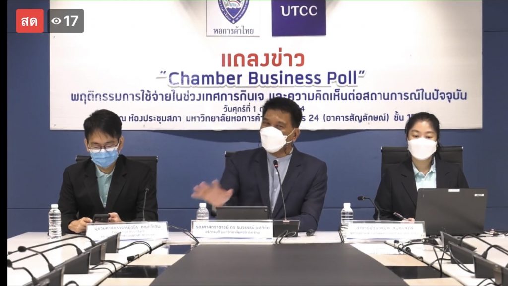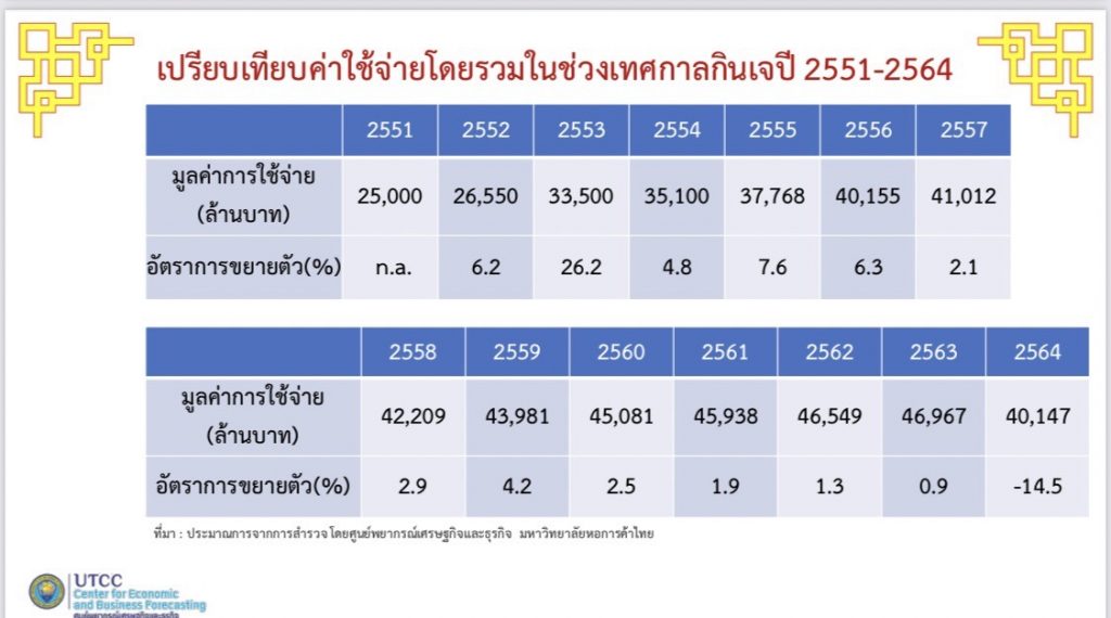 รศ.ดร.ธนวรรธน์ พลวิชัย อธิการบดีมหาวิทยาลัยหอการค้าไทย และ ประธานที่ปรึกษาศูนย์พยากรณ์เศรษฐกิจและธุรกิจ มหาวิทยาลัยหอการค้าไทยกล่าวถึงผลสำรวจพฤติกรรมและการใช้จ่ายของประชาชนในช่วงเทศกาลกินเจ ระหว่างวันที่ 4-13 ต.ค.64 นี้ ว่า ผลสำรวจประชาชนทางโทรศัพท์เพื่อหลีกเลี่ยงการติดเชื้อโควิดในช่วงปลายเดือนกันยายนที่ผ่านมา โดยเสียงส่วนใหญ่ระบุว่า เทศกาลกินเจปีนี้ คนที่กินเจส่วนใหญ่ยังมีความต้องการที่จะร่วมกินเจเพื่อทำบุญและลดการบริโภคอาหารสัตว์ แต่ยอมรับว่าจากปัญหาการแพร่ระบาดโควิด-19 ที่ทำให้เศรษฐกิจโดยรวมมีปัญหา ทำให้เทศกาลกินเจในปีนี้ไม่คึกคักเหมือนปีที่ผ่านมา เนื่องจากยังวิตกจากปัญหาการติดเชื้อโควิดรายวันยังมีอัตราที่สูง จึงไม่อยากให้ติดเองต้องไปรับเชื้อจากโควิดเพิ่มเติม ทำให้การกินเจในปีนี้พฤติกรรมการกินเจจะเน้นไปสั่งซื้อสินค้าอาหารเจทางออนไลน์มาบริโภคแทนการออกไปนั่งกินหรือการไปกินเจตามสถานที่ต่างๆ เหมือนที่ผ่านมา