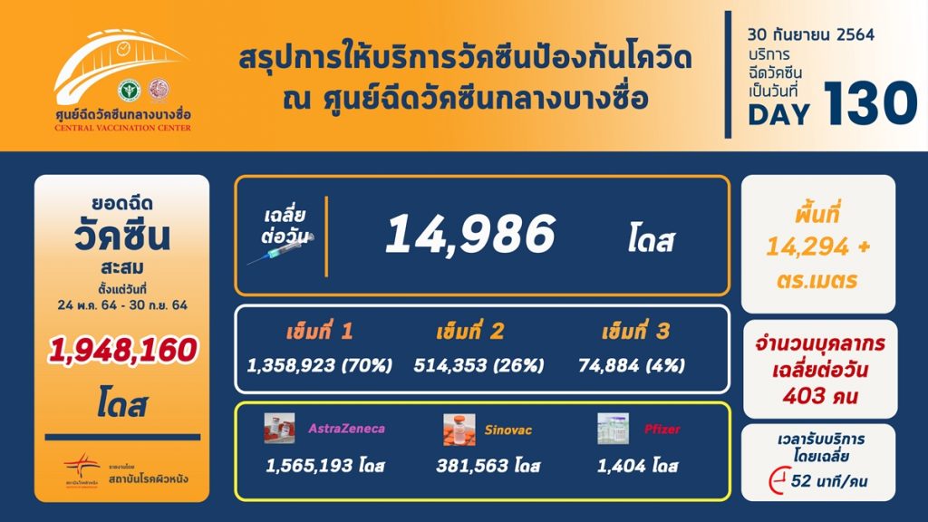 โดยนายศักดิ์สยาม กล่าวว่า หลังจากที่กระทรวงคมนาคมได้รับนโยบายจากรัฐบาล ทำหน้าที่สนับสนุนภารกิจด้านสาธารณสุขดูแลผู้ป่วยติดเชื้อโควิด-19 ได้มีการจัดเตรียมพื้นที่บางส่วนของสถานีกลางบางซื่อ เพื่อเปิดเป็น “ศูนย์ฉีดวัคซีนกลางบางซื่อ” สำหรับรองรับการให้บริการฉีดวัคซีนแก่ประชาชน ตั้งแต่วันที่ 24 พฤษภาคม 2564 เป็นต้นมา รวมทั้งสิ้น 130 วัน ปัจจุบันได้ให้บริการฉีดวัคซีนแก่บุคลากรด่านหน้ากระทรวงคมนาคม พนักงานผู้ให้บริการระบบขนส่งสาธารณะ ทั้งทางบก ทางน้ำ ทางราง และทางอากาศ รวมถึงประชาชนทั่วไปแล้วทั้งสิ้น 1,948,160 โดส รองรับการฉีดวัคซีนได้เฉลี่ย 14,986 คน/วัน แบ่งออกเป็นการฉีดวัคซีนเข็มแรก จำนวน 1,358,923 โดส เข็มที่ 2 จำนวน 514,353 โดส และเข็มที่ 3 ซึ่งเริ่มฉีดไปเมื่อวันที่ 24 กันยายน 2564 จำนวน 74,884 โดส โดยคาดว่าในส่วนของการฉีดวัคซีนเข็มที่ 2 จะฉีดได้ครบตามเป้าหมาย ภายในวันที่ 30 พฤศจิกายน 2564 ตามนโยบายของ พล.อ.ประยุทธ์ จันทร์โอชา นายกรัฐมนตรี