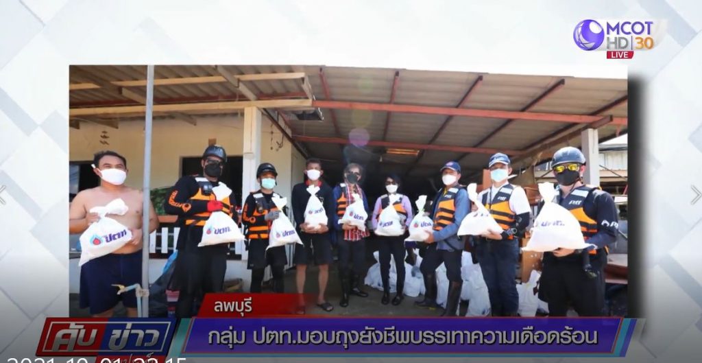 โดย ปตท. ได้ลงพื้นที่ช่วยเหลือประชาชน นำโดยนายอรรถพล ฤกษ์พิบูลย์ ประธานเจ้าหน้าที่บริหารและกรรมการผู้จัดการใหญ่ บริษัท ปตท. จำกัด (มหาชน) พร้อมคณะผู้บริหาร ปตท. ร่วมส่งมอบถุงยังชีพ ในนามชมรมพลังไทยใจอาสา กลุ่ม ปตท. จำนวน 1,000 ถุง ประกอบไปด้วยอาหารพร้อมรับประทาน เครื่องอุปโภคบริโภคที่จำเป็นต่อการดำรงชีพ เพื่อบรรเทาความเดือดร้อนของประชาชนเบื้องต้น จากเหตุอุทกภัยในพื้นที่ ต.ท่ามะนาว อ.ชัยบาดาล จ.ลพบุรี ซึ่งขณะนี้ยังมีน้ำท่วมสูงและฝนตกหนัก ทำให้บ้านเรือนเสียหายเป็นจำนวนมาก