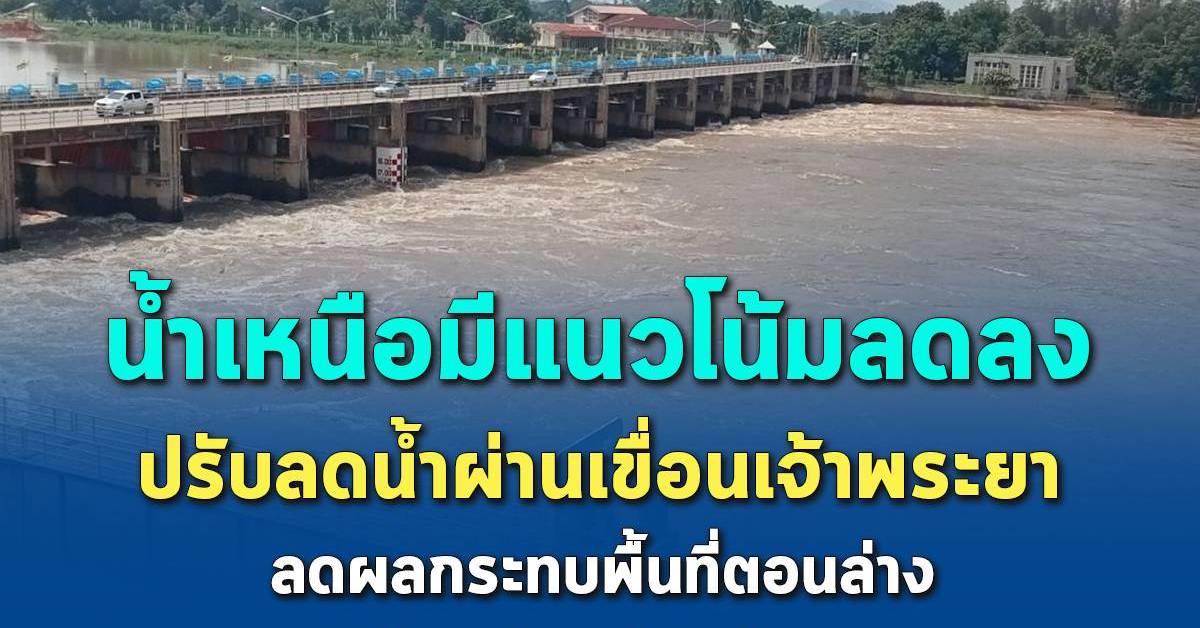 ชัยนาท 2 ต.ค.-อธิบดีกรมชลประทาน เผยข่าวดี เริ่มปรับลดน้ำผ่านเขื่อนเจ้าพระยา เพื่อลดผลกระทบพื้นที่ตอนล่างแล้ว เนื่องจากน้ำเหนือมีแนวโน้มลดลง