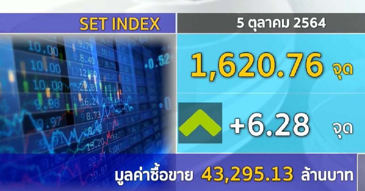 กทม. 5 ต.ค.-ตลาดหุ้นไทย ช่วงเช้าถึงช่วงเที่ยง เคลื่อนไหวในทิศทางบวกเล็กน้อย ช่วงเที่ยงอยู่ที่ 1,620.76 จุด บวก 6.28 จุด มูลค่าซื้อขาย 43,295.13 ล้านบาท ด้านหุ้นน้องใหม่ เทรดวันแรก “SVT” เปิดที่ 2.88 บาท สูงกว่าราคาไอพีโอ ที่หุ้นละ 2.54 บาท