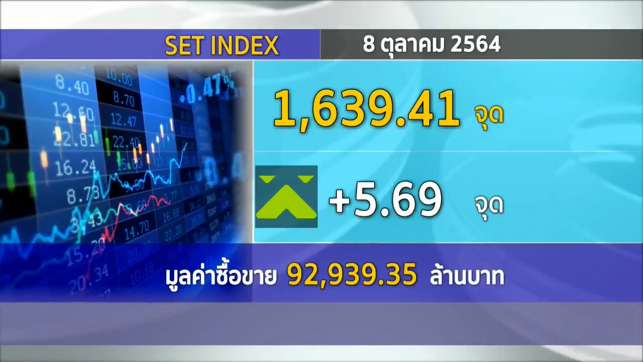 กทม. 8 ต.ค.- ตลาดหลักทรัพย์ ปิดวันนี้ที่ระดับ 1,639.41 จุด เพิ่มขึ้น 5.69 จุด (+0.35%) มูลค่าการซื้อขาย 92,939.35 ล้านบาท ตามภูมิภาครับแรงหนุนน้ำมันขึ้น-กลุ่มเปิดเมือง, จับตางบแบงก์