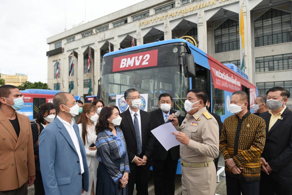 เป็นผู้รับมอบ และมีผู้บริหารจากหน่วยงานต่าง ๆ ร่วมเป็นตัวแทนในการส่งมอบ ประกอบด้วย นายอธิป พีชานนท์ รองประธานกรรมการสภาหอการค้าแห่งประเทศไทย ดร.กฤษณะ วจีไกรลาศ กรรมการเลขาธิการหอการค้าไทยและสภาหอการค้าแห่งประเทศไทย นายพรภัทร บพิธบัณพร รองกรรมการผู้จัดการ บริษัท สมาร์ทบัส จำกัด นายบุญมา พนธนกรกุล รองกรรมการผู้จัดการใหญ่ธุรกิจค้าปลีกน้ำมันบริษัท ปตท. น้ำมันและการค้าปลีก จำกัด มหาชน (OR) นายพิชัย จิราธิวัฒน์ กรรมการบริหารกลุ่มเซ็นทรัล นางสาววิภา อัมพุช ผู้อำนวยการใหญ่บริหารสินค้า บริษัท เดอะมอลล์ กรุ๊ป จำกัด และนางวารี ซึ้งไพศาลกุล จากชมรมบางขุนเทียน เพื่อใช้ในภารกิจป้องกันการแพร่ระบาดของโรคติดเชื้อไวรัสโคโรนา 2019 (โควิด-19) ในพื้นที่กรุงเทพมหานคร