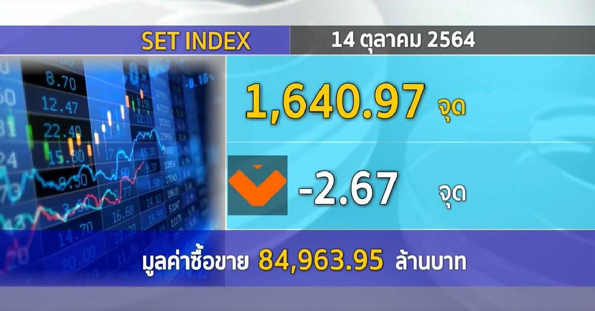 กทม. 14 ต.ค.-ตลาดหลักทรัพย์ ปิดวันนี้ที่ระดับ 1,640.97 จุด ลดลง 2.67 จุด (-0.16%) มูลค่าการซื้อขาย 84,963.95 ล้านบาท ตลาดหุ้นไทยวันนี้เคลื่อนไหวกรอบแคบหลังยอดผู้ติดเชื้อโควิด-19 และผู้เสียชีวิตในประเทศสูงขึ้น กังวลเฟดเร่งลด QE