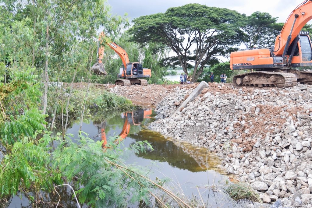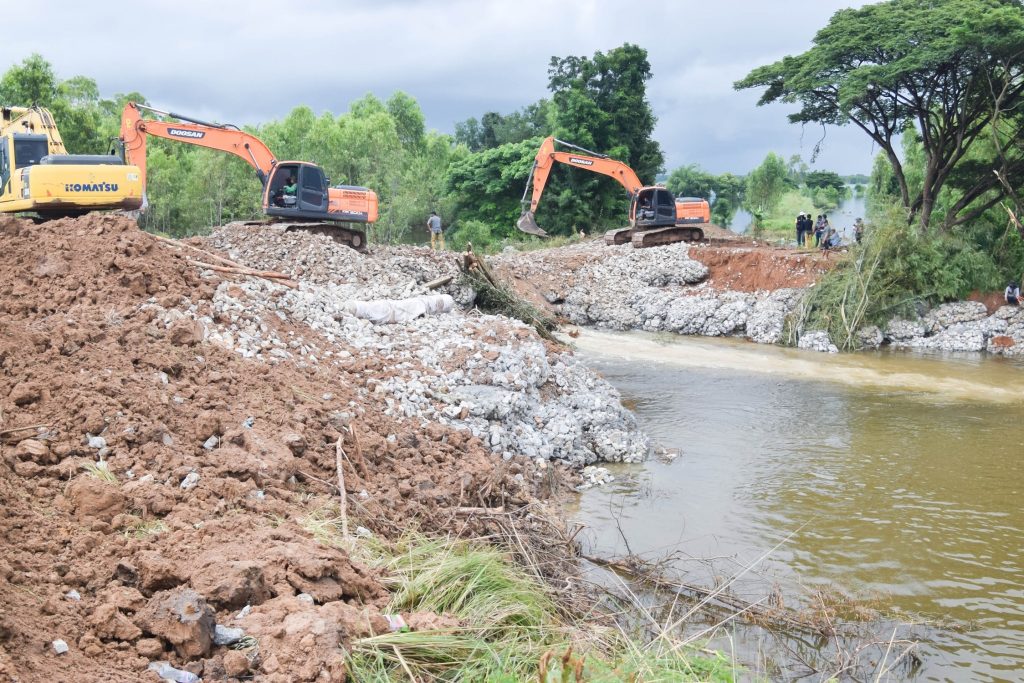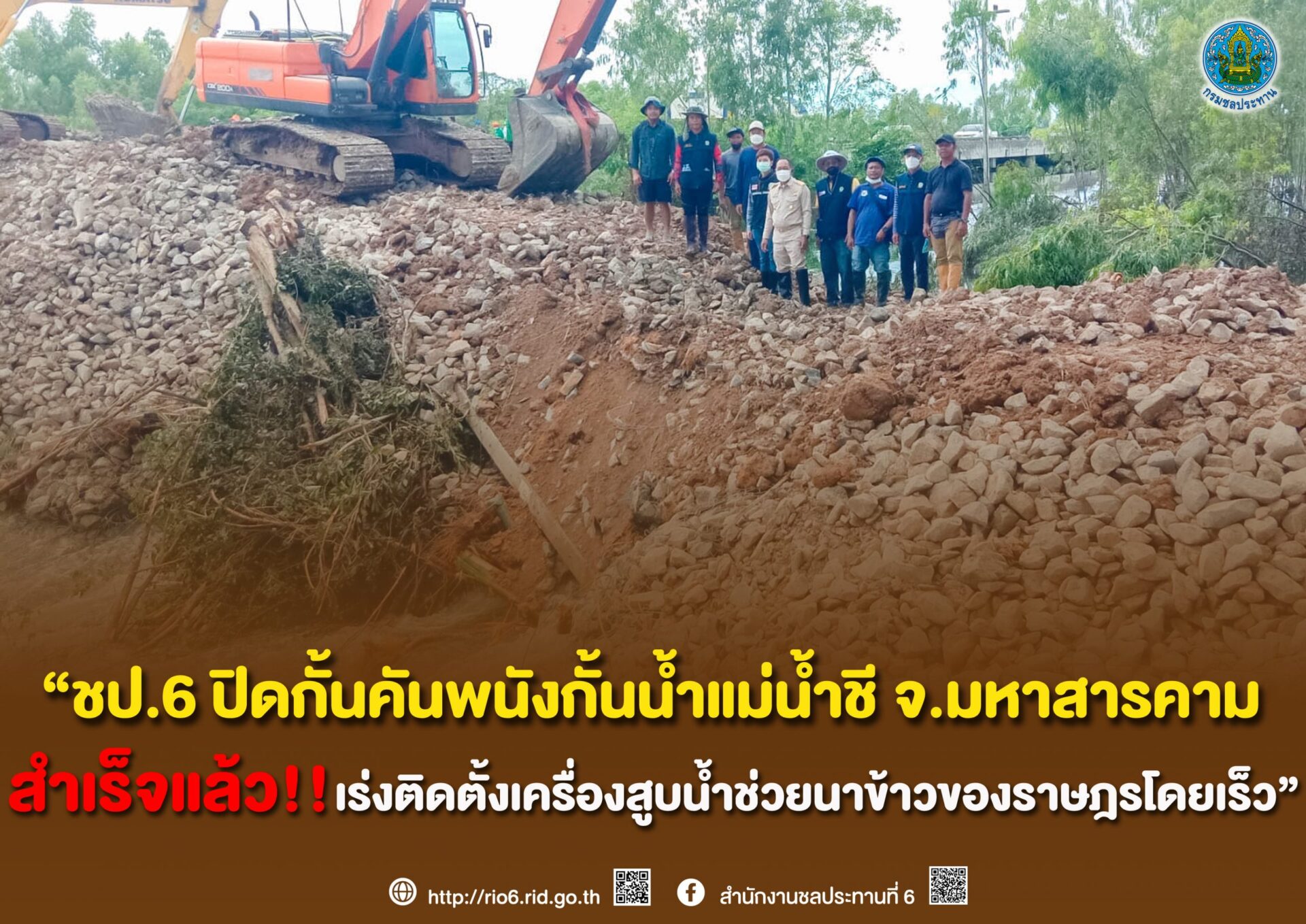 นายเกียรติศักดิ์ หนูแก้ว ผู้อำนวยการสำนักงานชลประทานที่ 6 เปิดเผยว่า ปิดกั้นจุดขาดคันพนังกั้นน้ำชี A1 ต.ยางท่าแจ้ง อ.โกสุมพิสัย จ.มหาสารคามเรียบร้อยแล้ว โดยดำเนินการตั้งแต่น้ำในแม่น้ำชีไหลล้นตลิ่งและย้อนเข้ามาปะทะคันพนังกั้นน้ำ แล้วกัดเซาะจนขาดตั้งแต่วันที่ 9 ตุลาคม 2564 ที่ผ่านมา ซึ่งการดำเนินการเป็นความร่วมมือของสำนักงานชลประทานที่ 6 และสำนักเครื่องจักรกลกับราษฎรในพื้นที่ รวมทั้งทหาร ตำรวจ และหน่วยงานต่างๆ